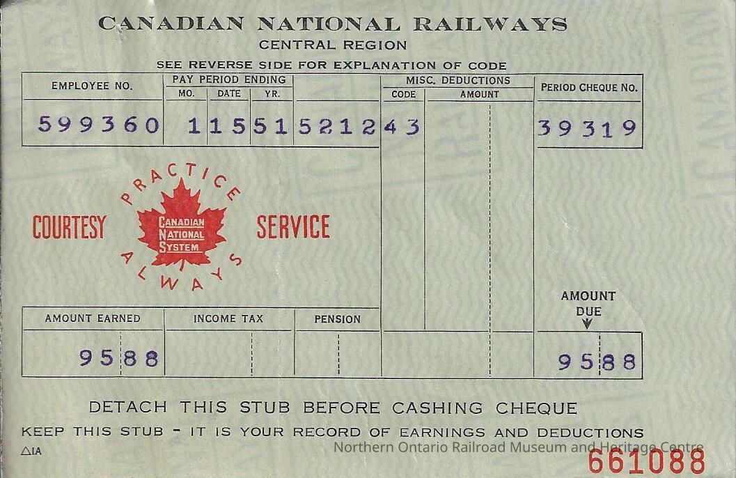 Canadian National Statement of Earnings and Deductions belonging to Frank MazzucaEntry/Object ID
