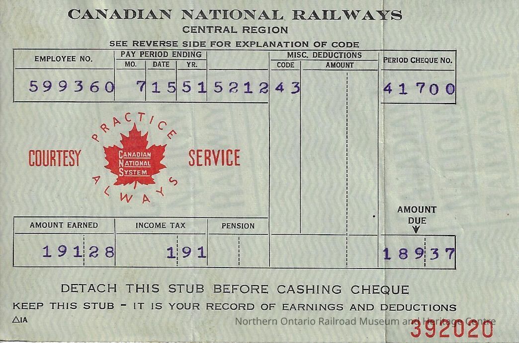 Canadian National Statement of Earnings and Deductions belonging to Frank MazzucaEntry/Object ID