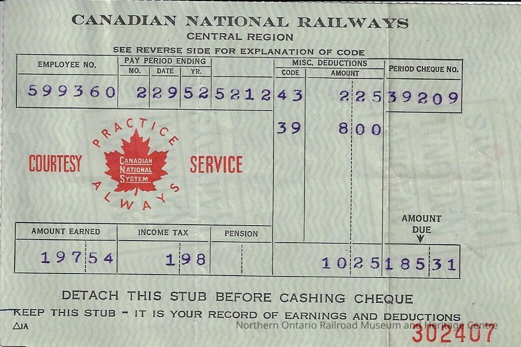 Canadian National Statement of Earnings and Deductions belonging to Frank MazzucaEntry/Object ID