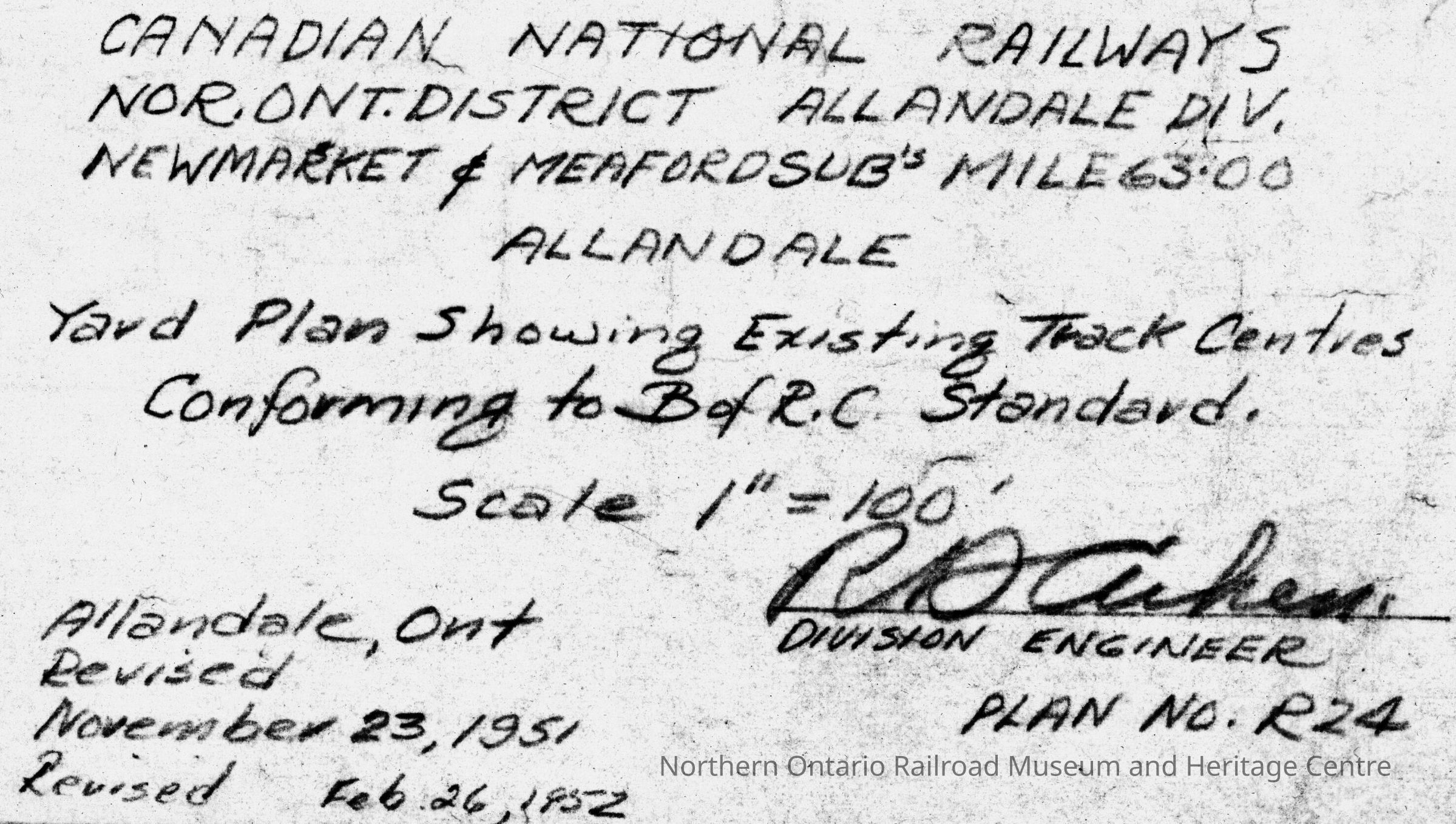Canadian National: Yard Plan Showing the Existing Track Centres Conforming to B of R. C. Standard at AllandaleDescription