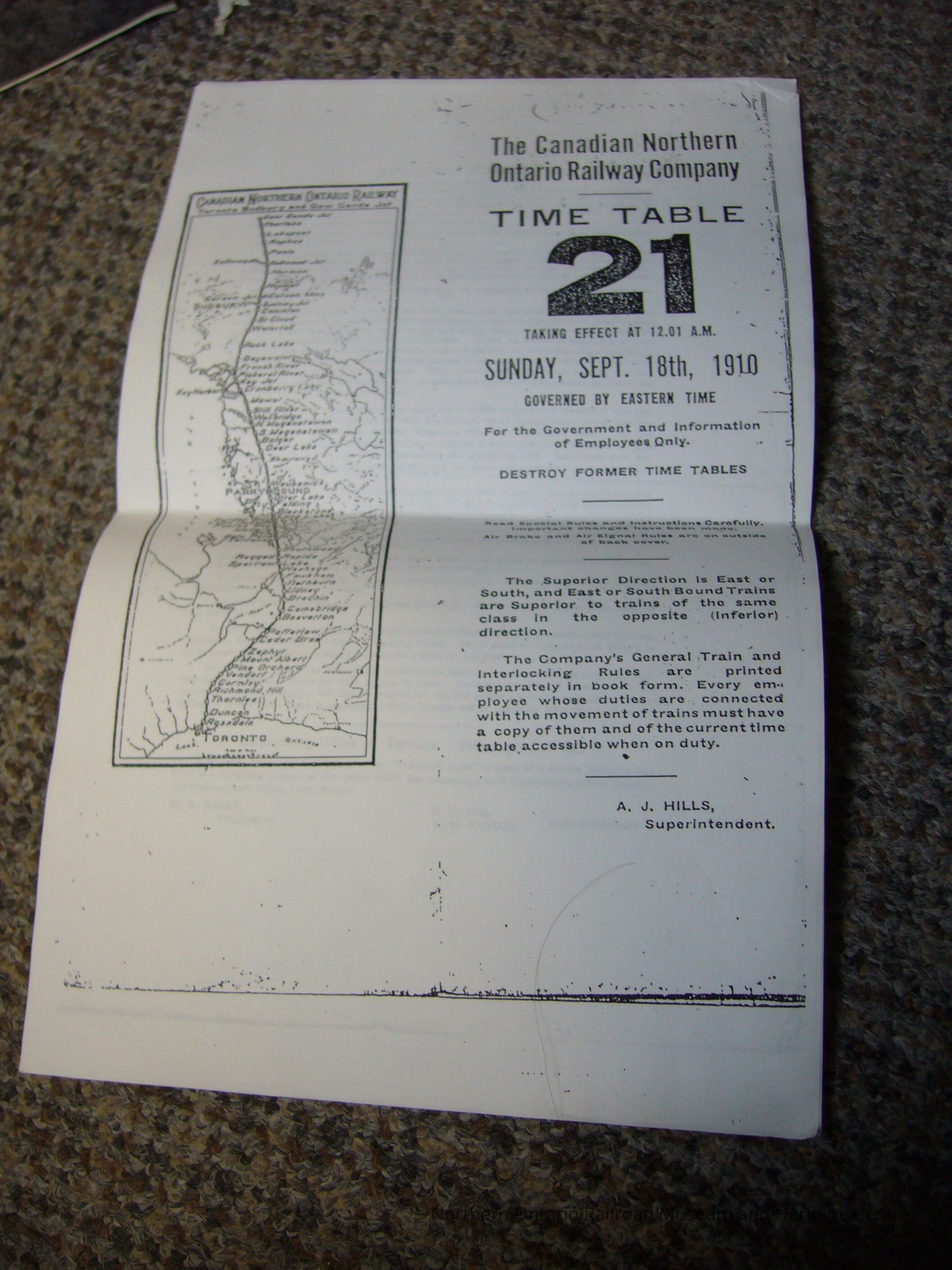 Canadian Northern Ontario Railway Company Timetable 21 September 18th 1910Entry/Object ID
