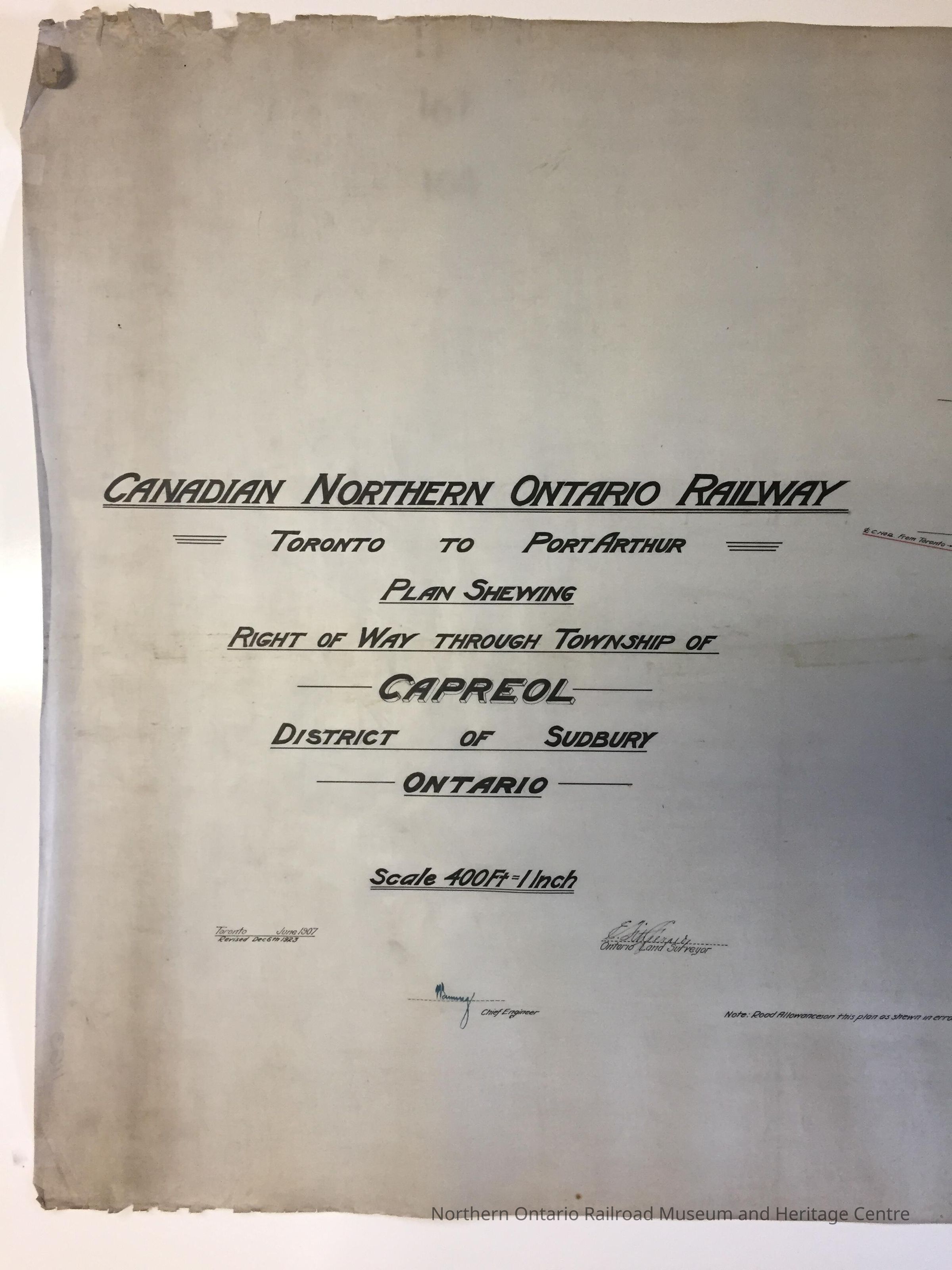 Right of Way Through Township of Capreol