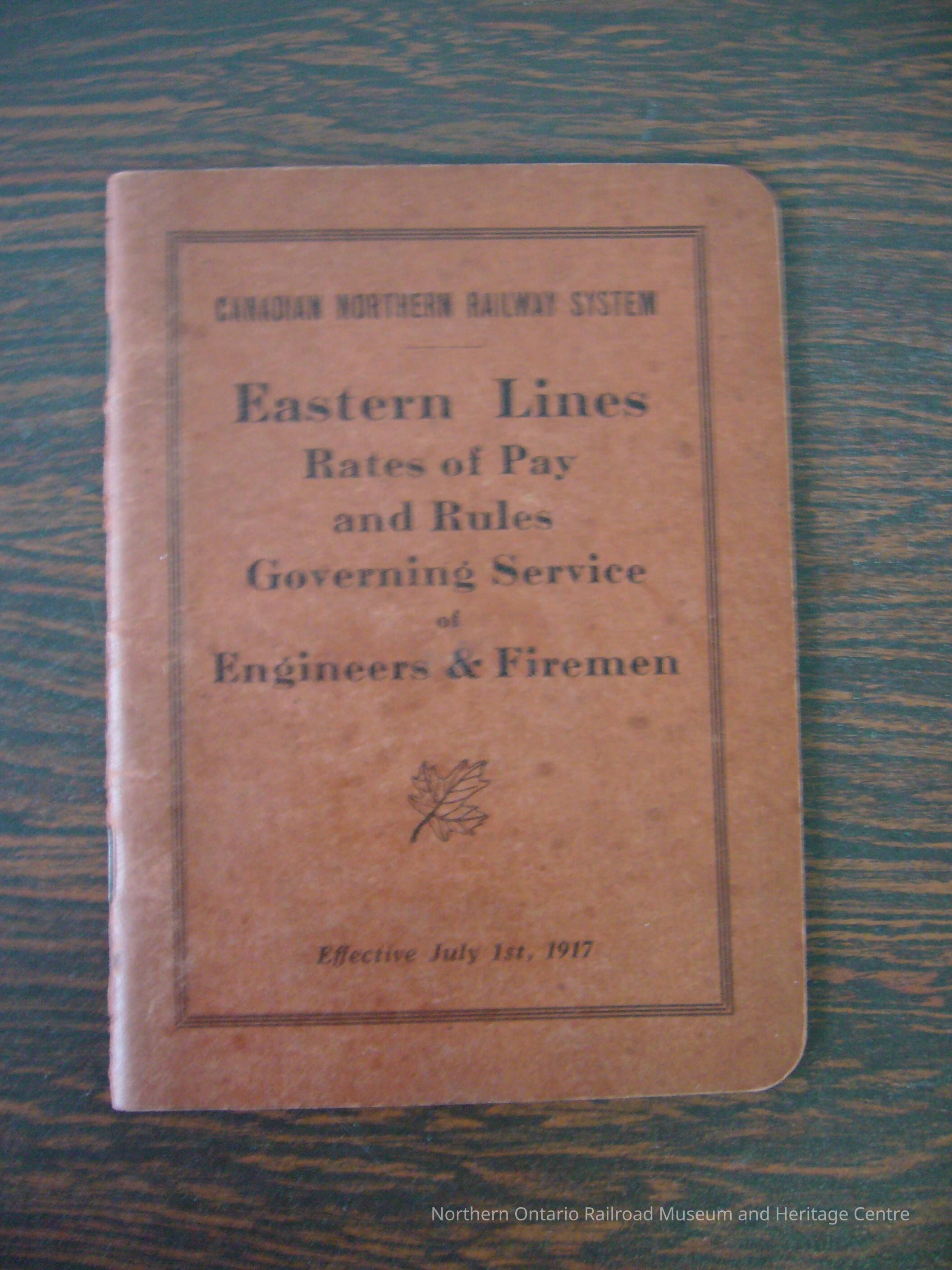 Canadian Northern Railway System Eastern Lines Rates of Pay and Rules Governing Service of Engineers & Firemen, Effective July 1st, 1917Description