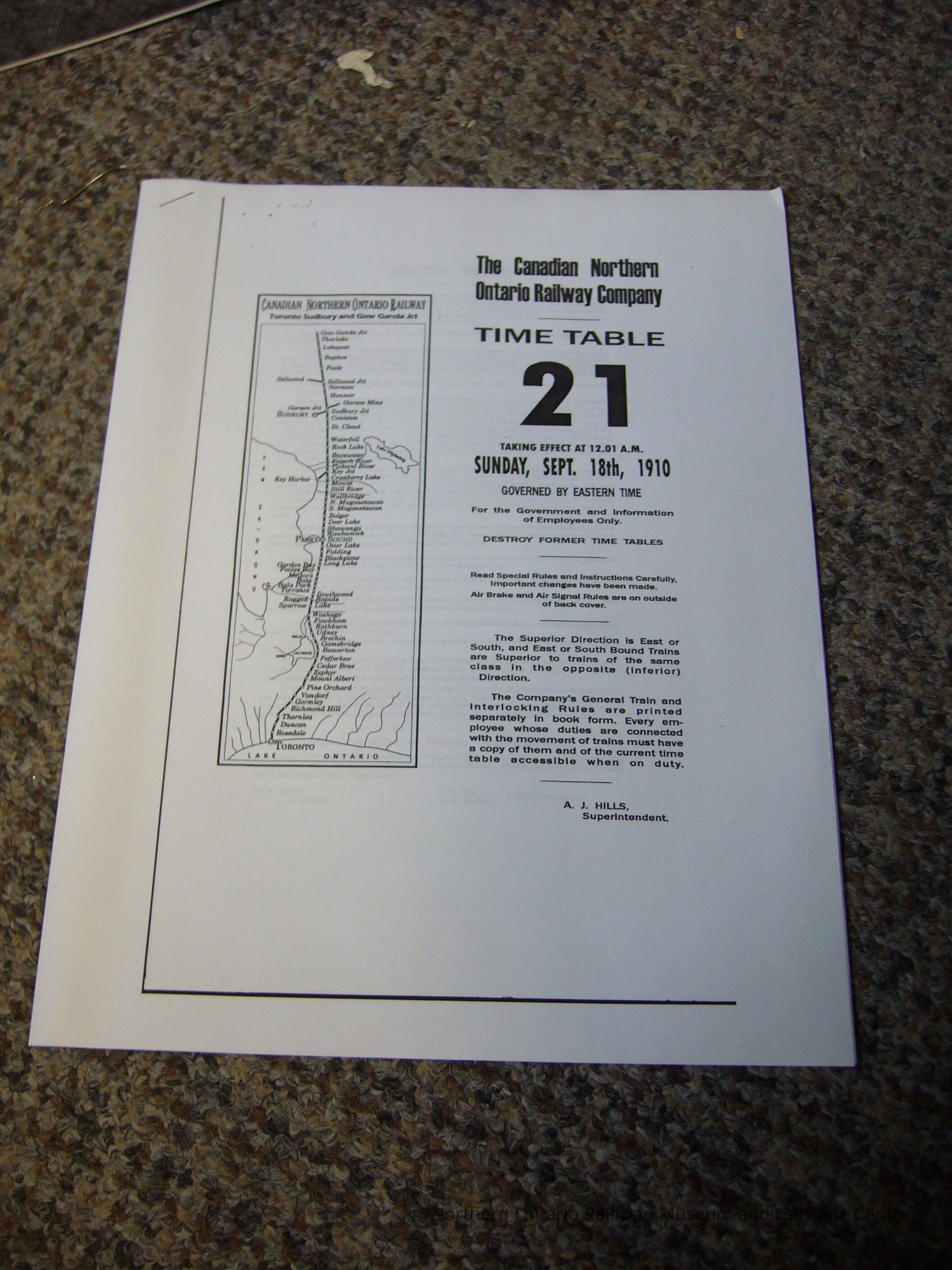 Canadian Northern Railway Timetable 21 September 1910Entry/Object ID
