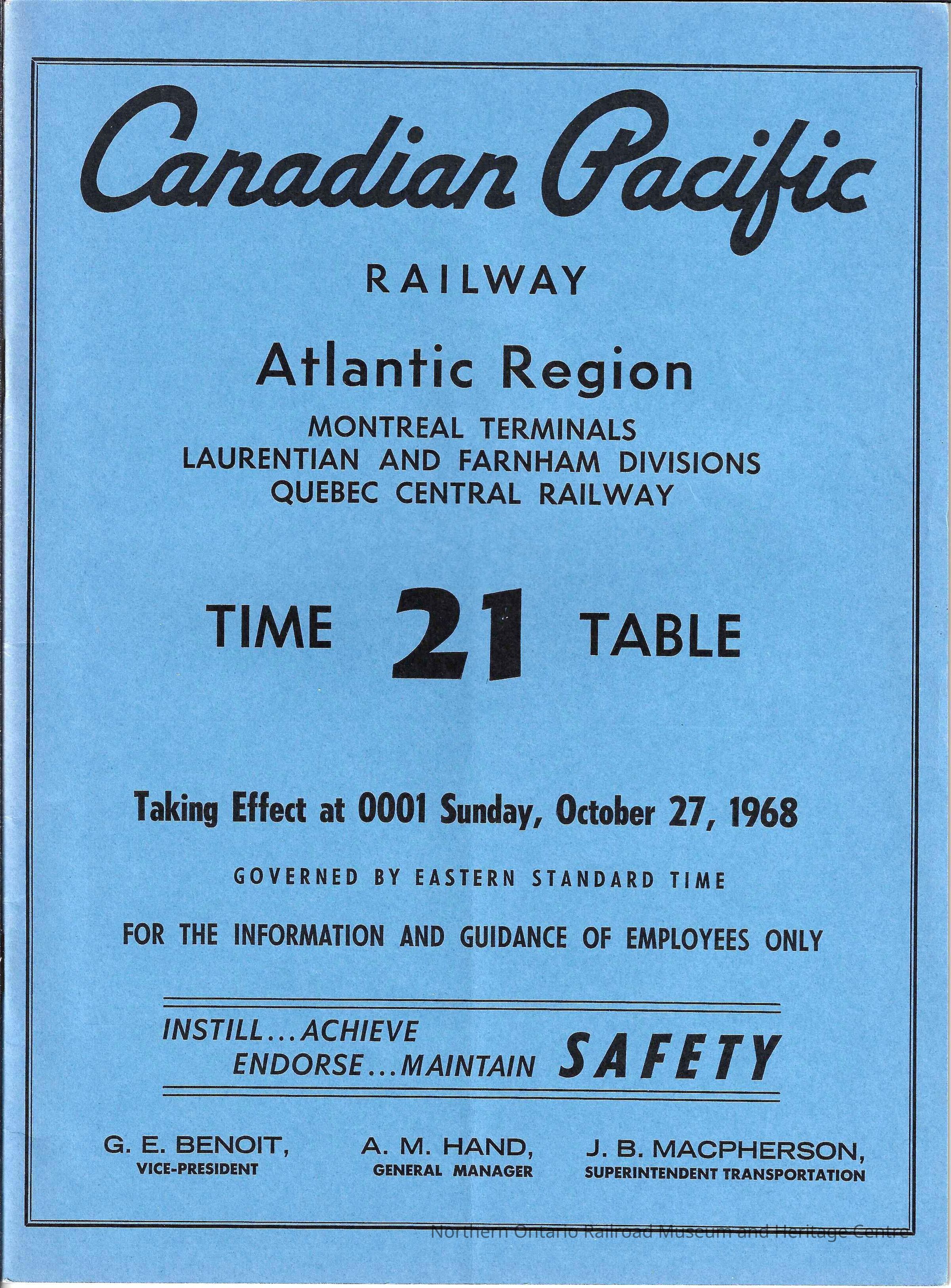 Canadian Pacific Railway - Atlantic Region - Montreal Division Time Table 21Entry/Object ID