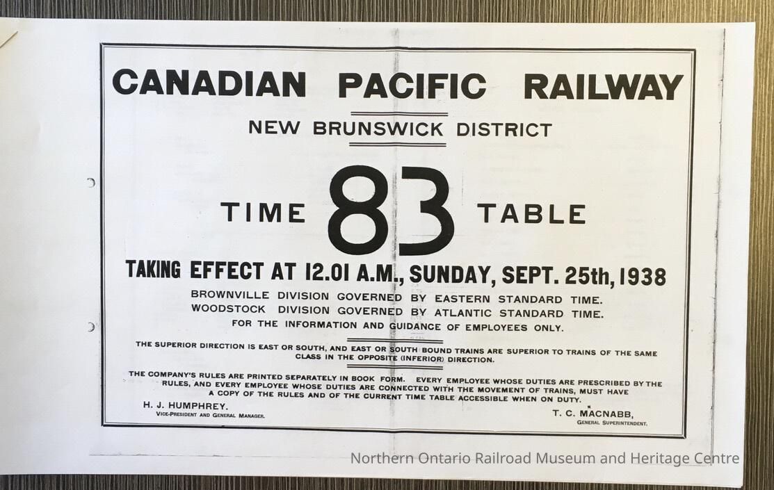 Canadian Pacific Railway, New Brunswick District, Timetable 83, 1938Entry/Object ID