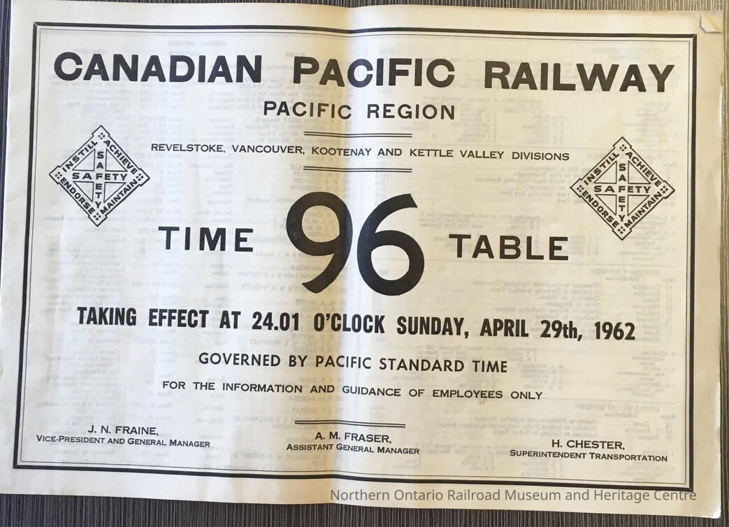 Canadian Pacific Railway, Pacific Region, Revelstoke, Vancouver, Kootenay and Kettle Valley Divisions, Timetable 96, 1962Entry/Object ID