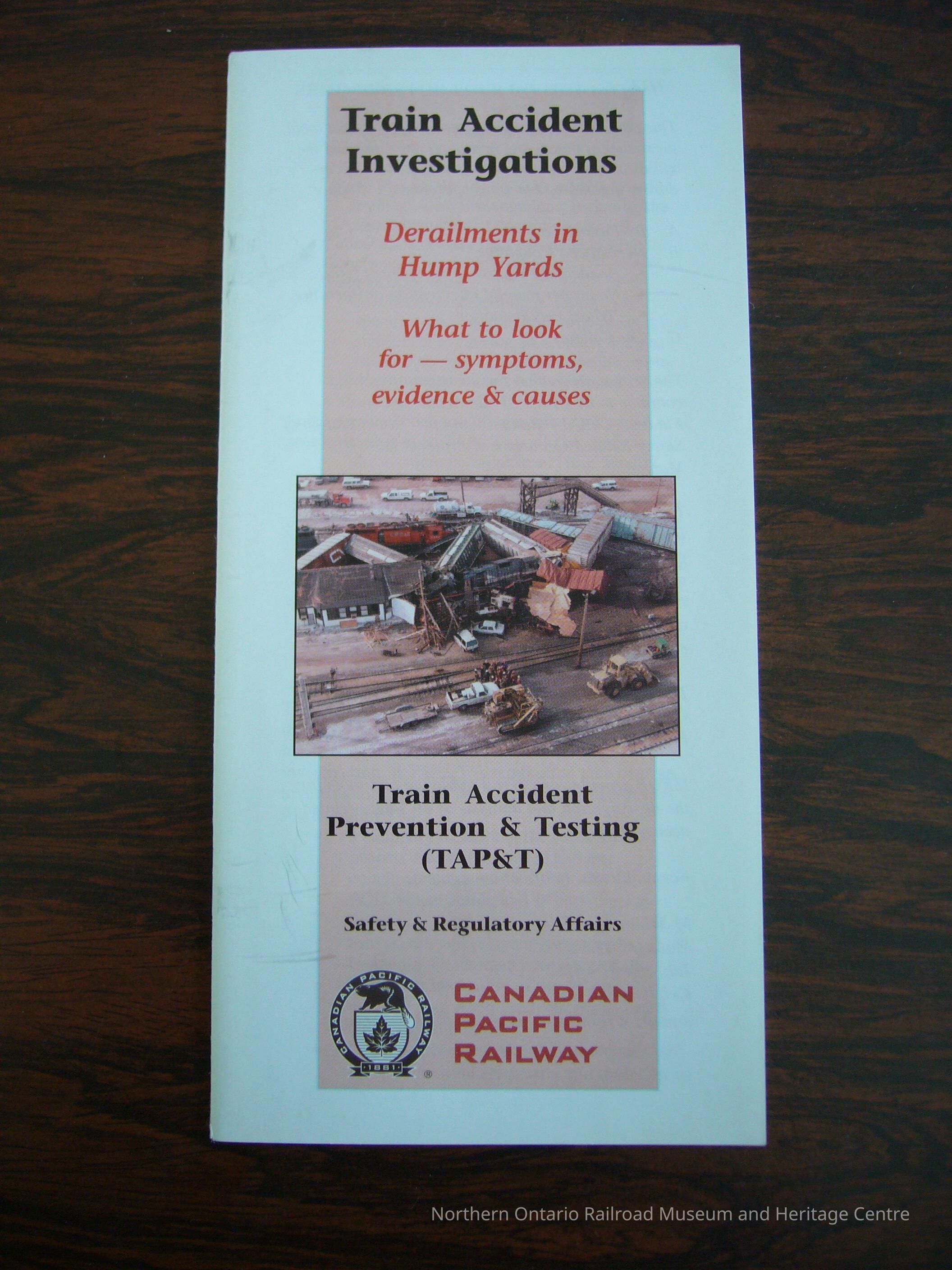 Canadian Pacific Railway pamphlet intended as a "quick reference tool to assist local personnel in the on-site investigation of some of the more common types of train accidents that occur during automated humping operations." (inside front cover)