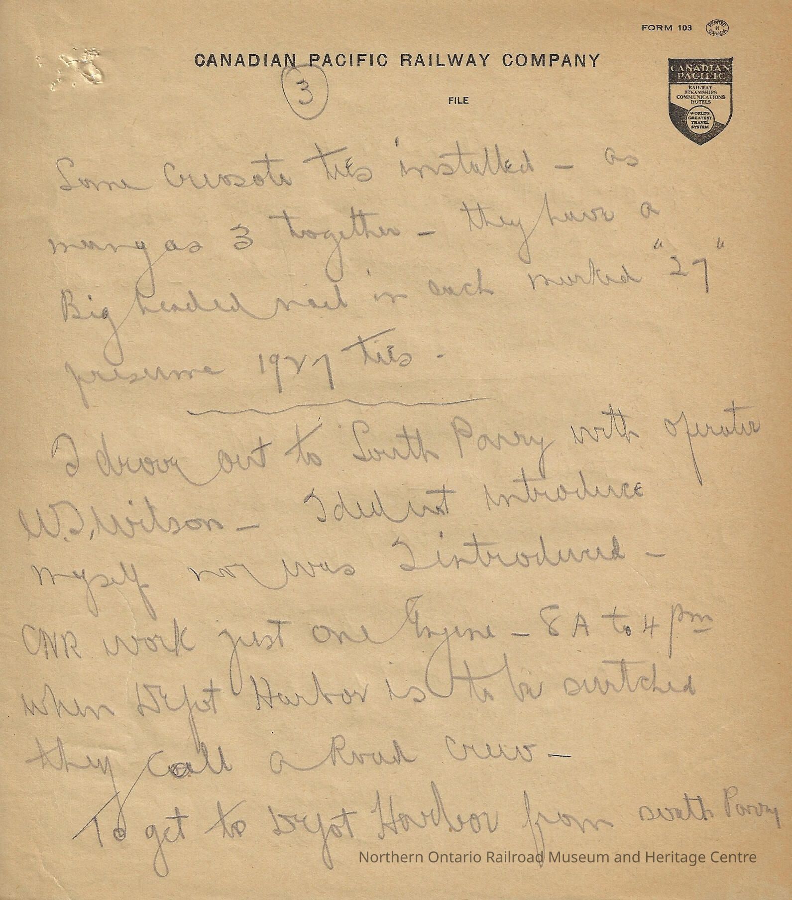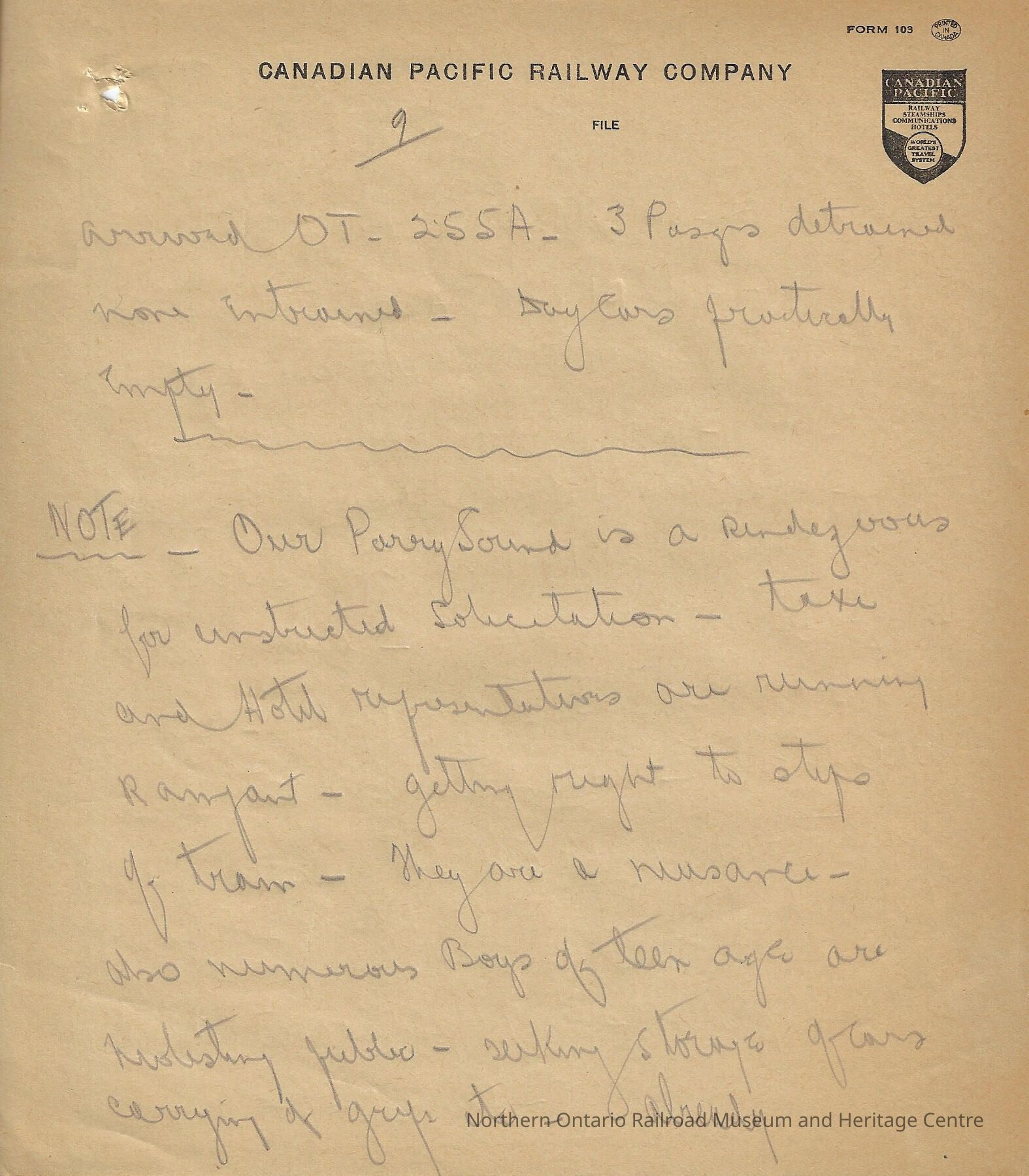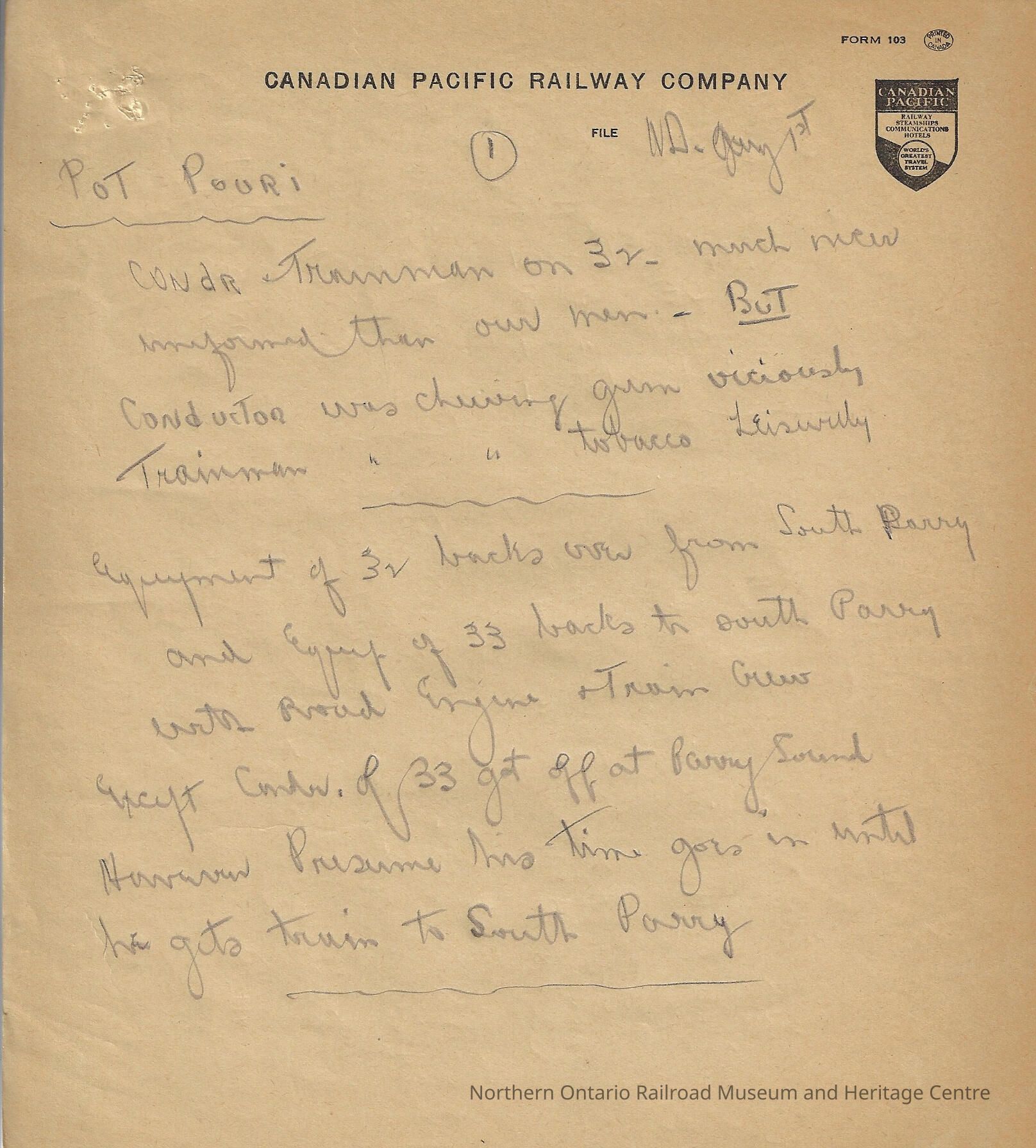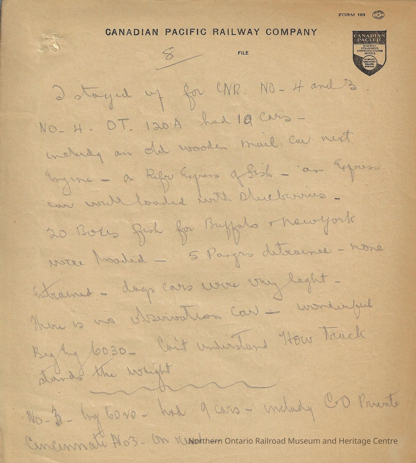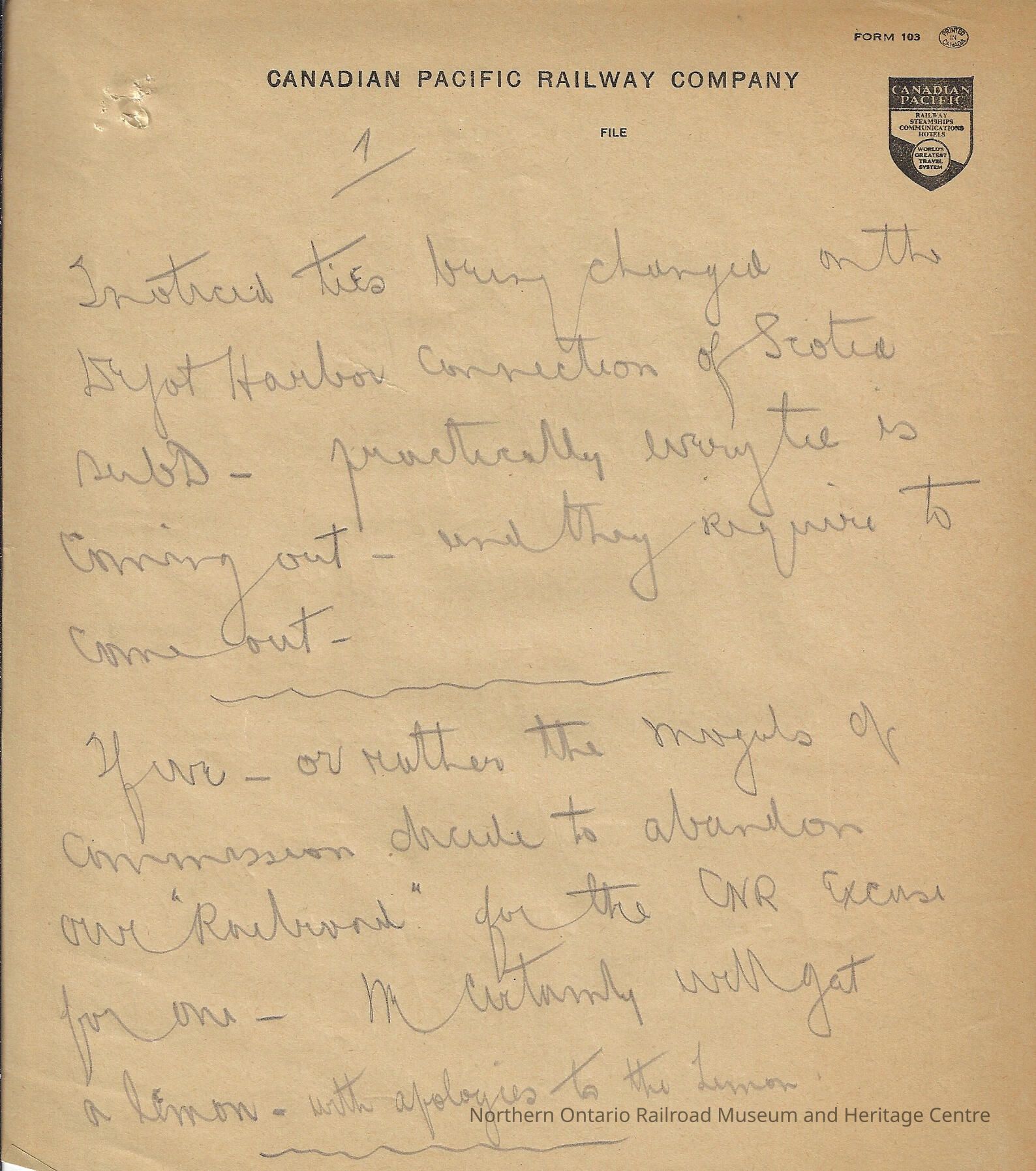 The notes are written on Canadian Pacific LetterheadArchive Items Details