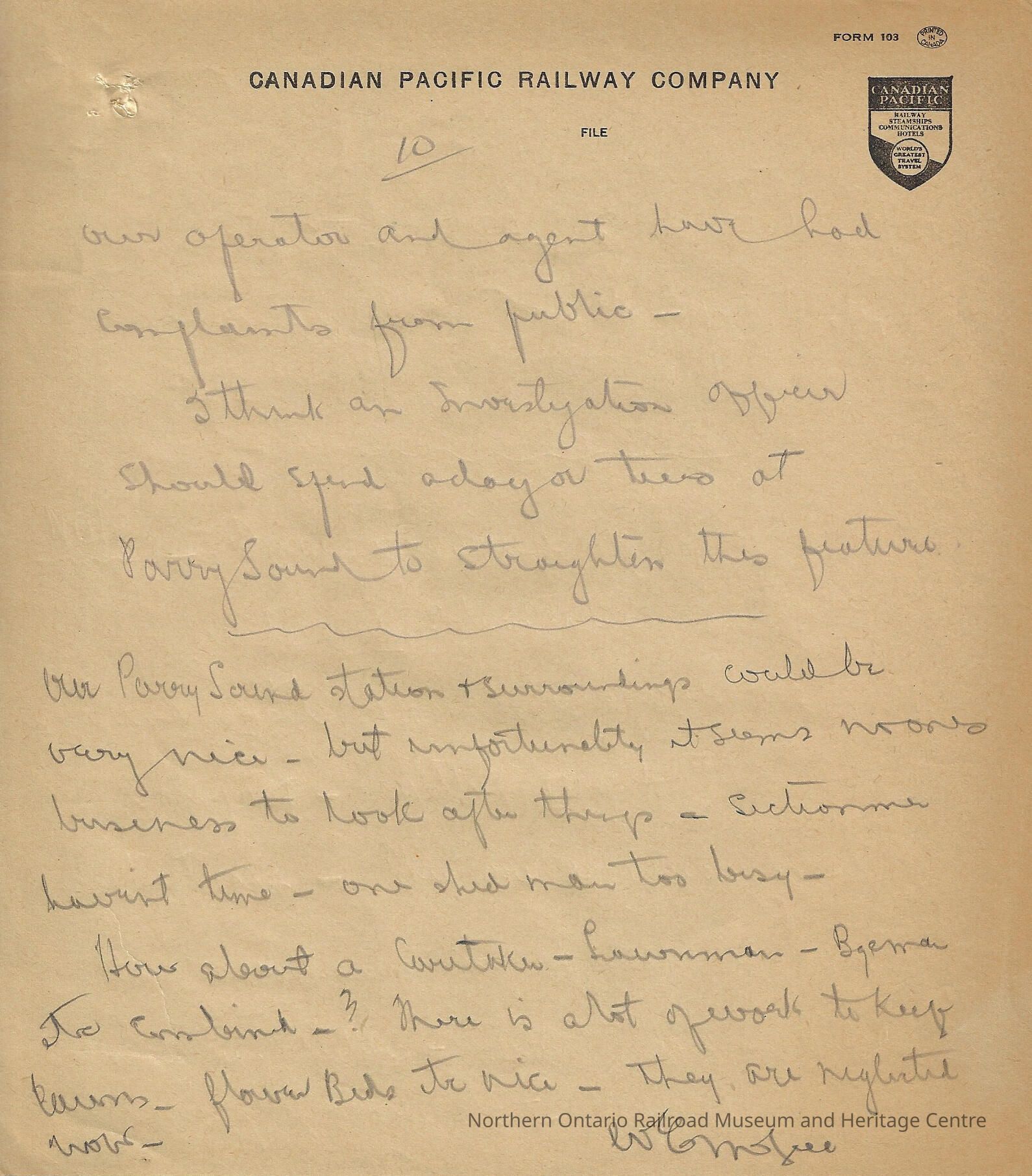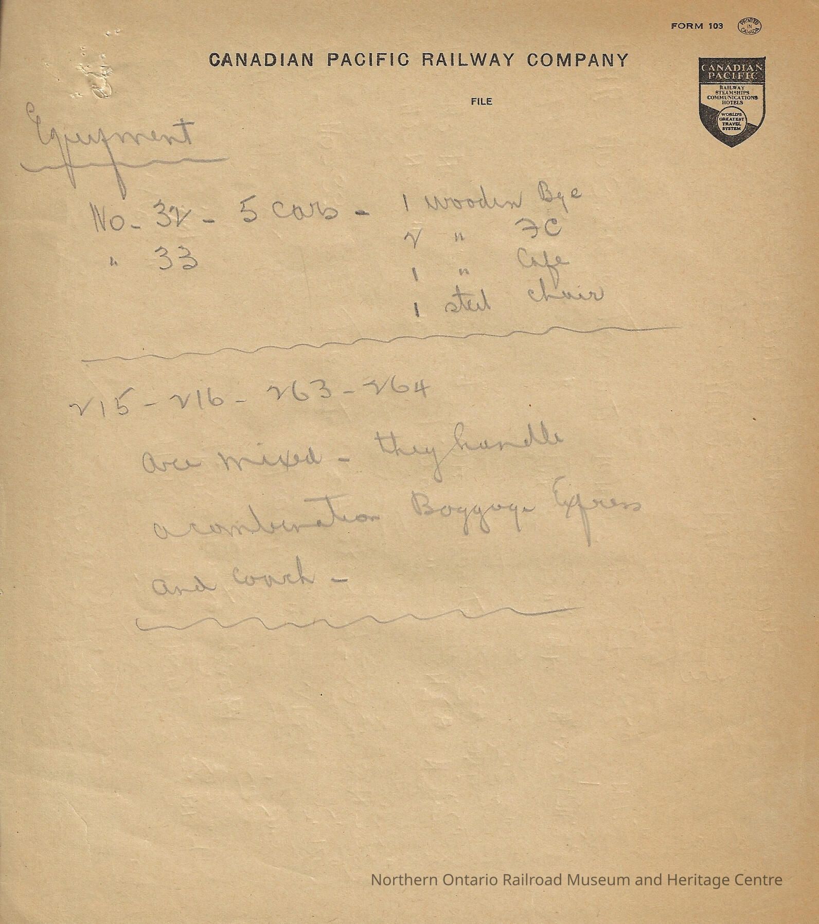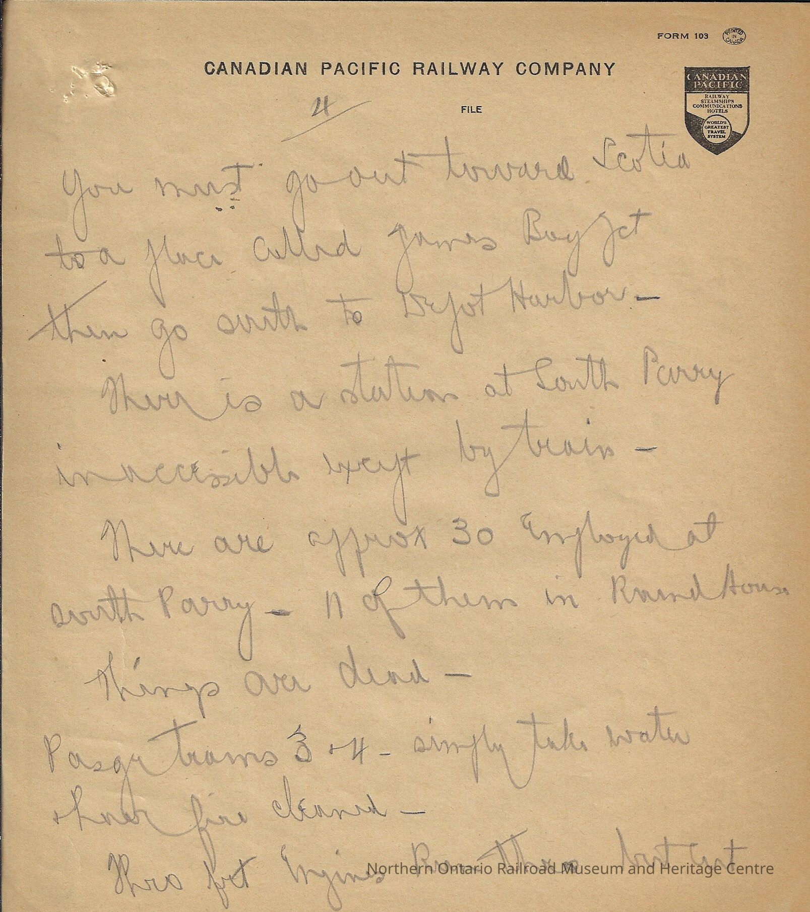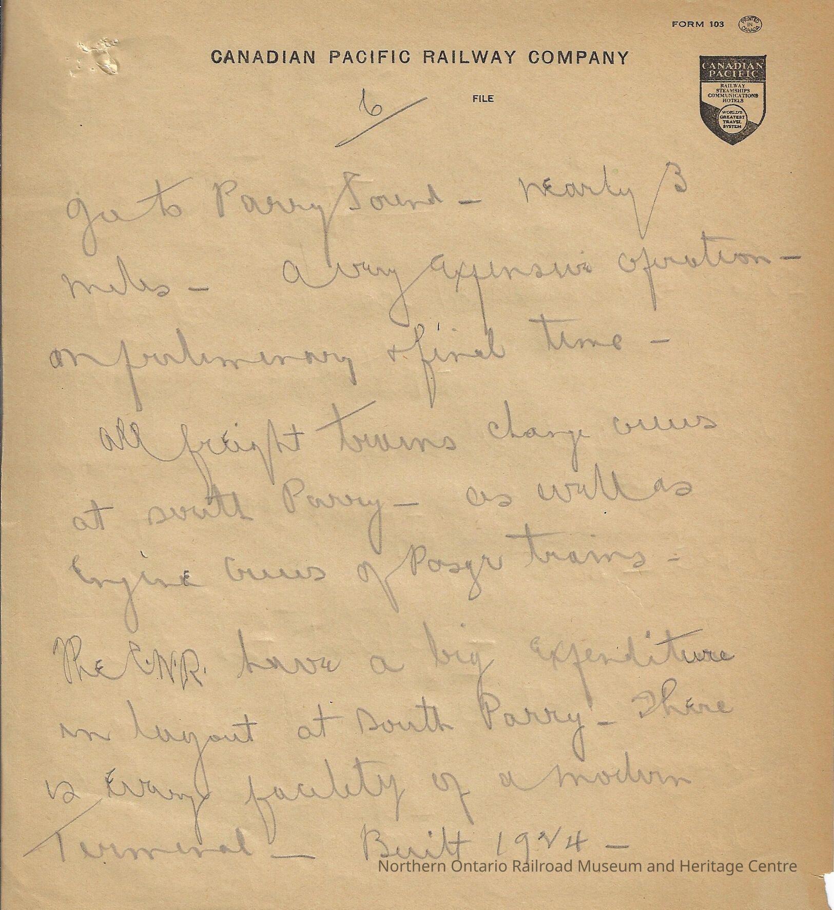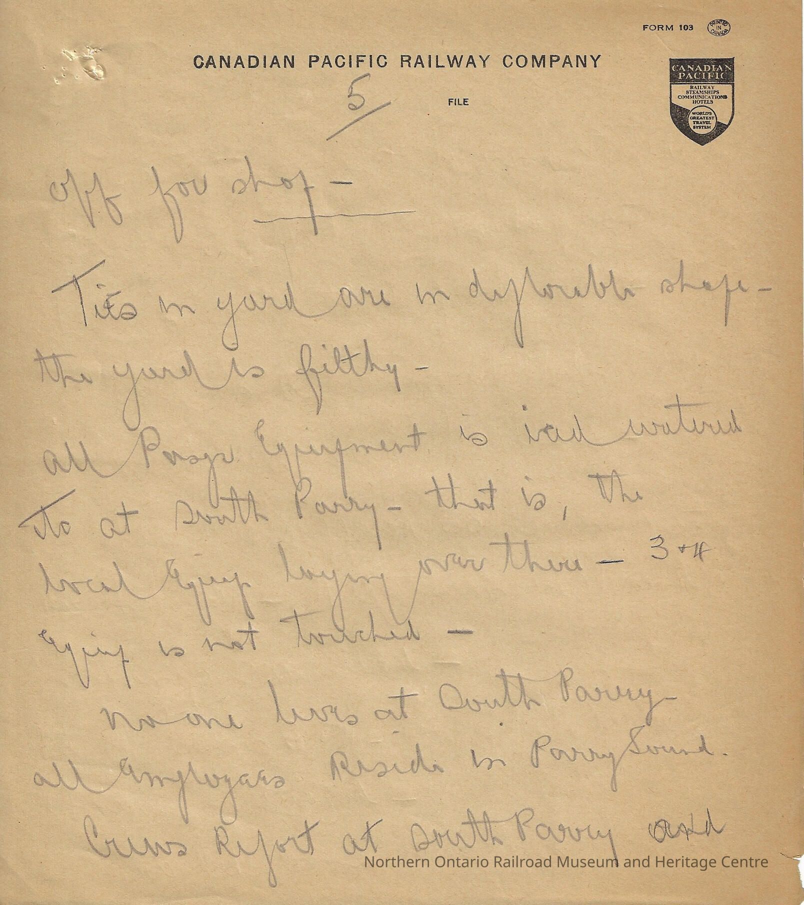 The notes are written on Canadian Pacific LetterheadArchive Items Details