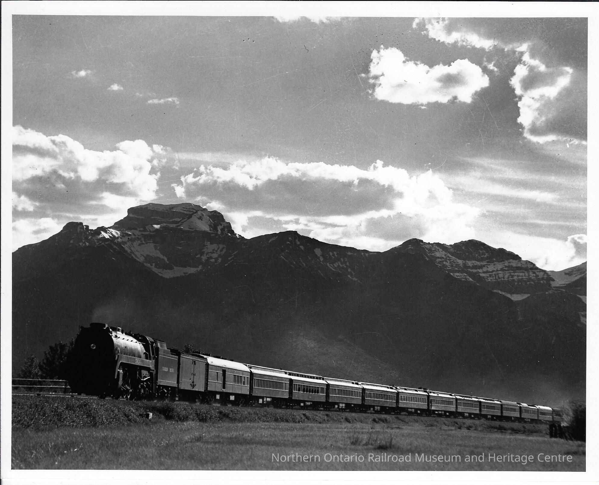Original document, original copy of the photograph of Canadian Pacific's Trans-Canada passenger train in the 1940s near Banff, Alberta.Collection