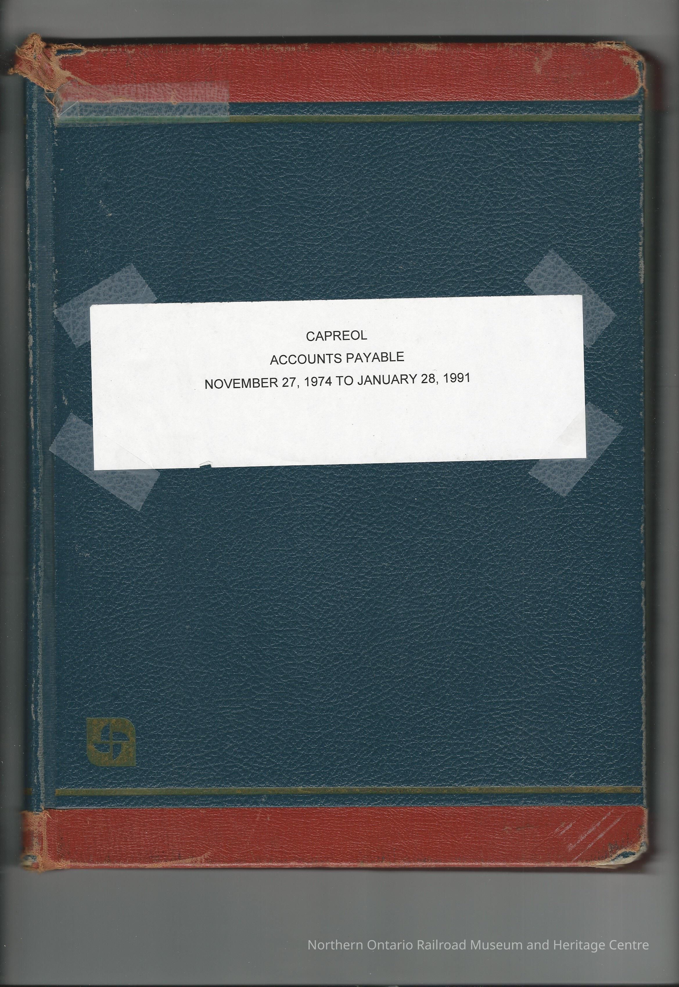 "Capreol Accounts Payable November 27, 1974 to January 1991" on a paper taped to the front coverOther Names and Numbers