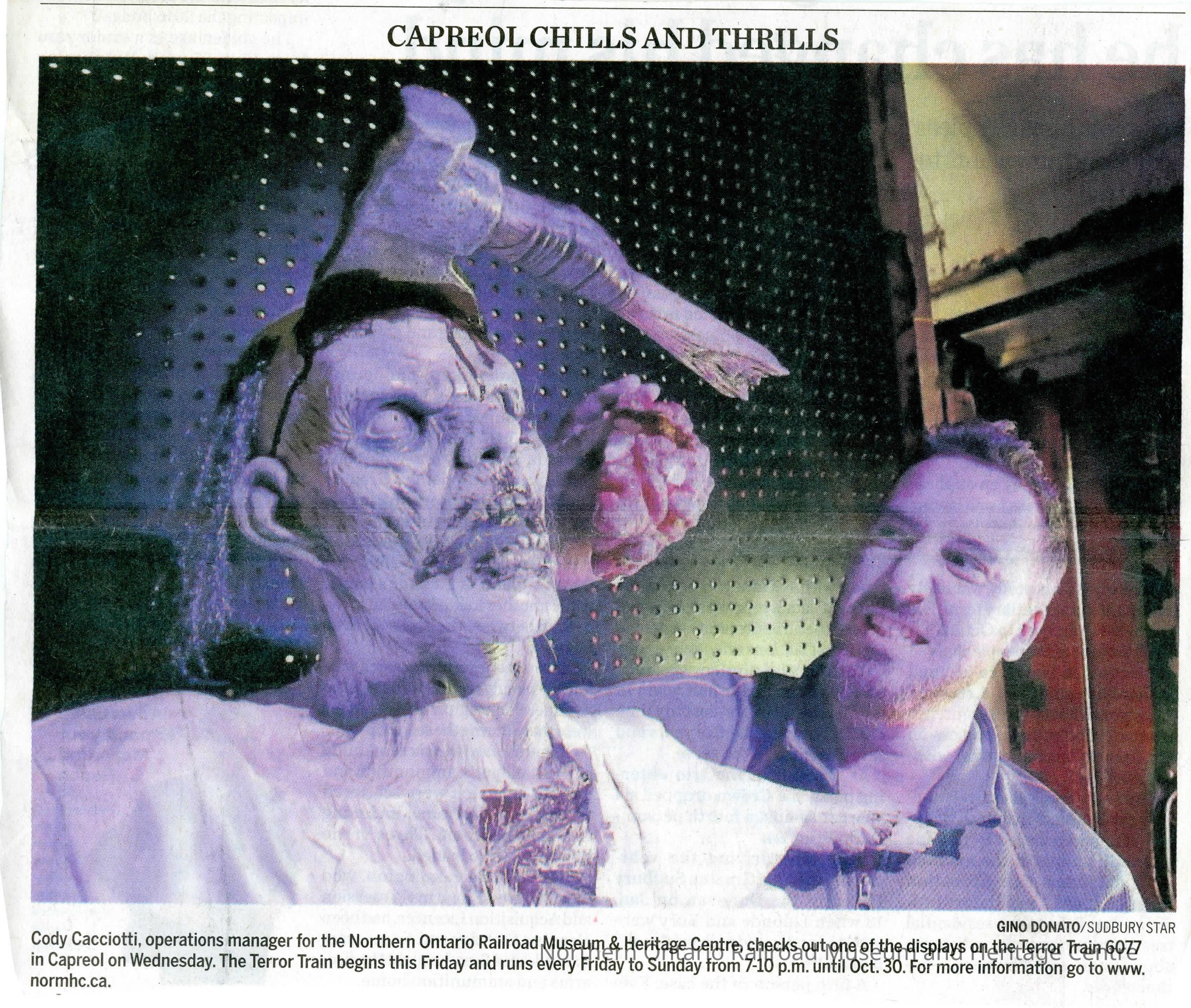 "Capreol Chills and Thrills" in the Sudbury Star from September 2016, feature Cody advertising the opening of the Terror Train 6077 for the season.Collection