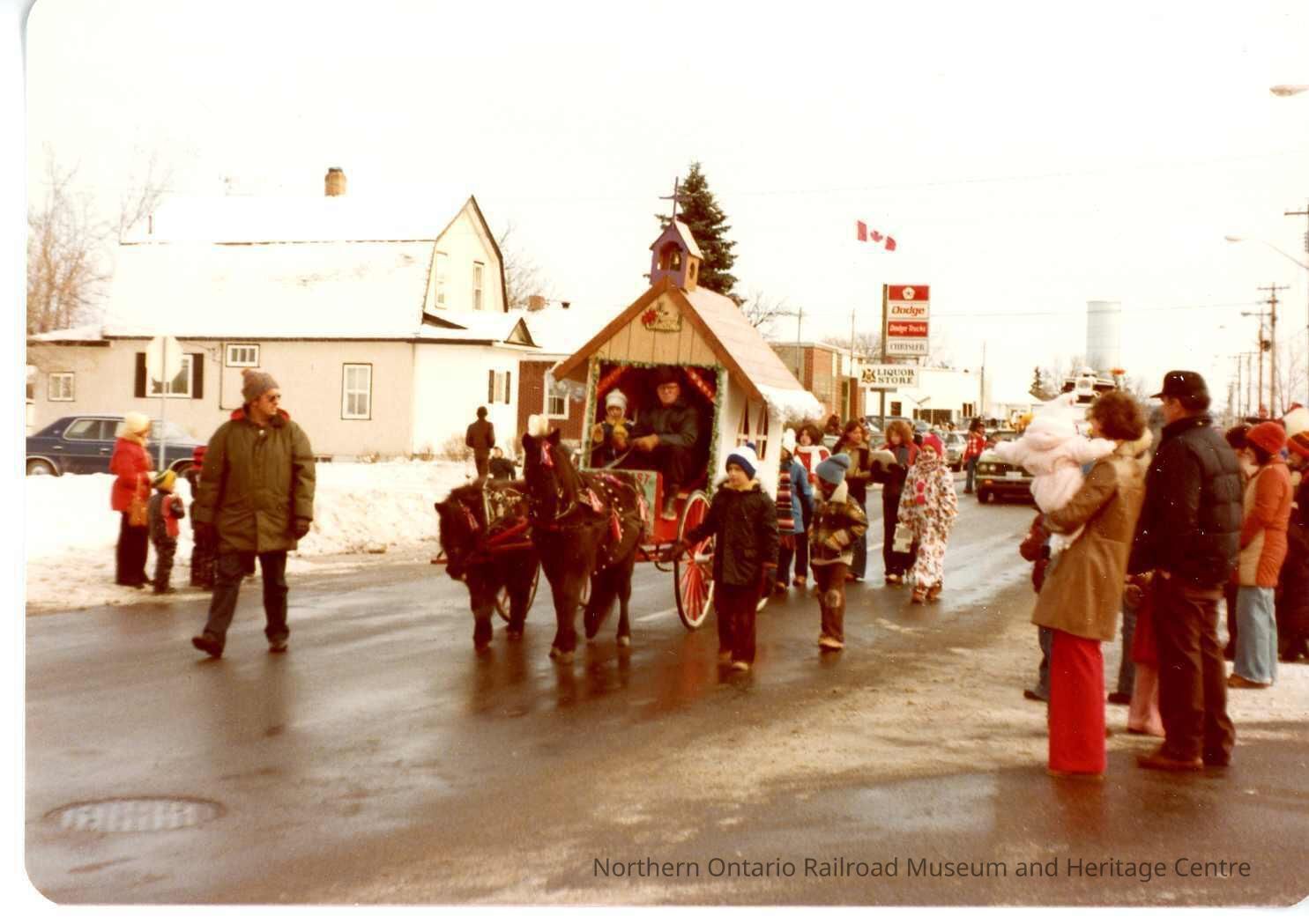 Capreol Santa Clause Circa 1950s. Taken at the Corner of Hanna St. and Kelly St. Muzzuca Chrysler and Liquor Store (now LCBO)Collection