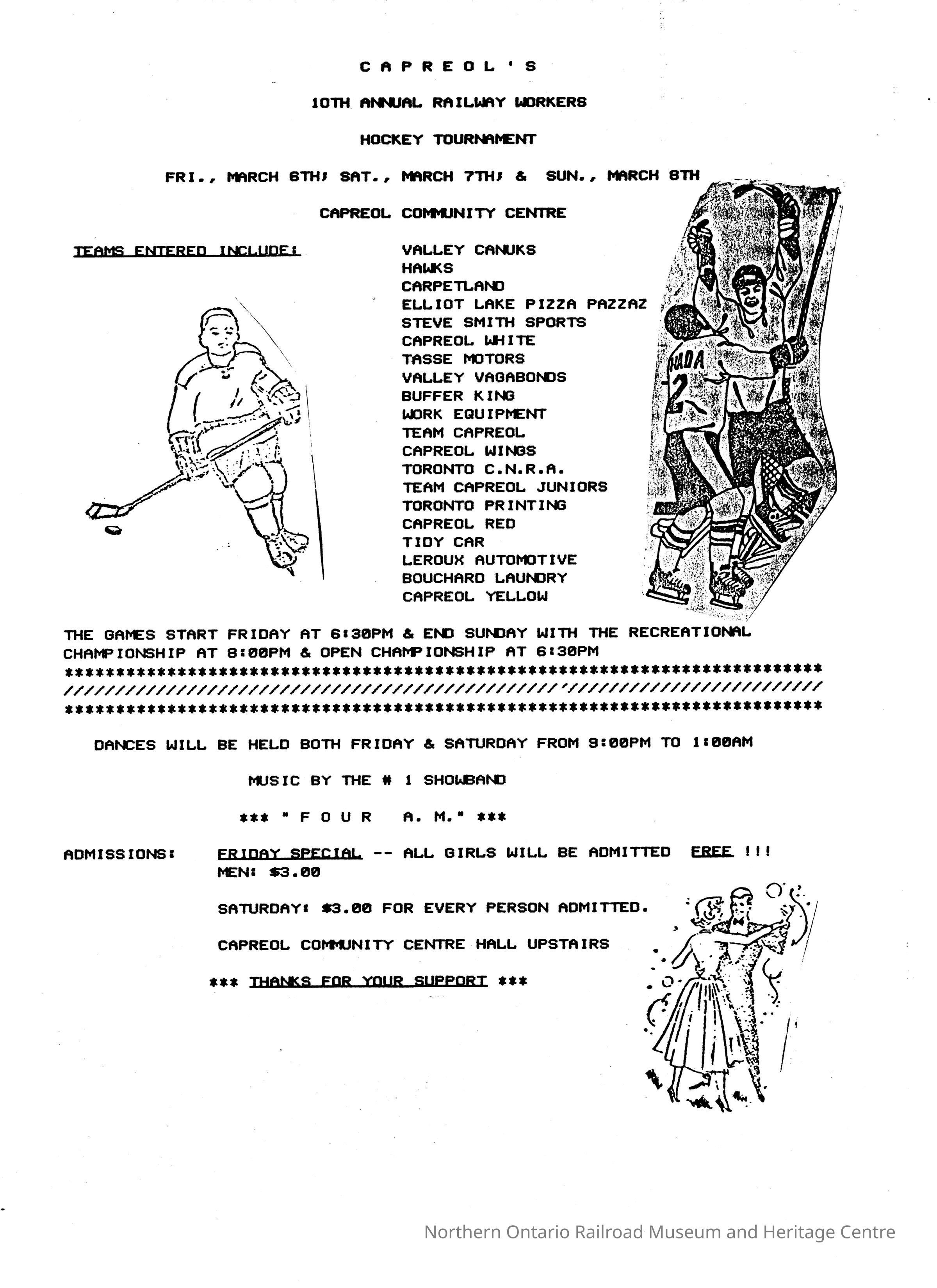 Capreol's 10th Annual Railway Workers Hockey TournamentEntry/Object ID