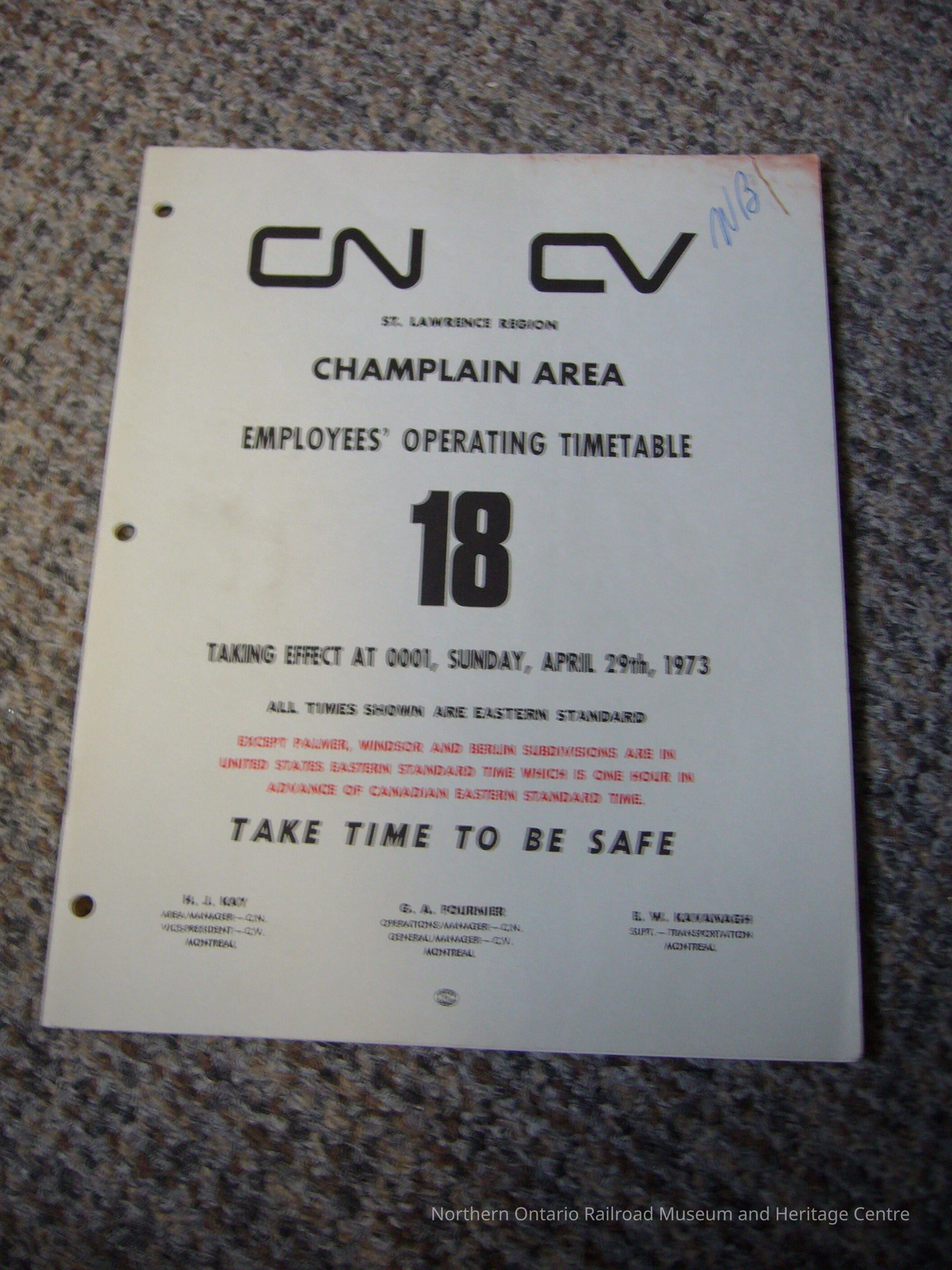 Champlain Area Employees Operating Timetable 18 April 29th 1973Entry/Object ID