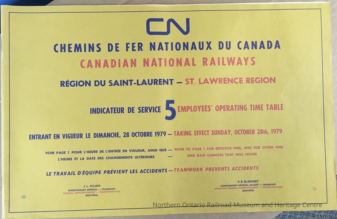 CN, Canadian National Railways, St. Lawrence Region, 5, Employees' Operating Time Table, 1979Entry/Object ID