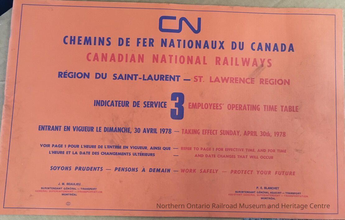 CN, Canadian National Railways, St. Lawrence Region, Employees' Operating Time Table 3, 1978Entry/Object ID