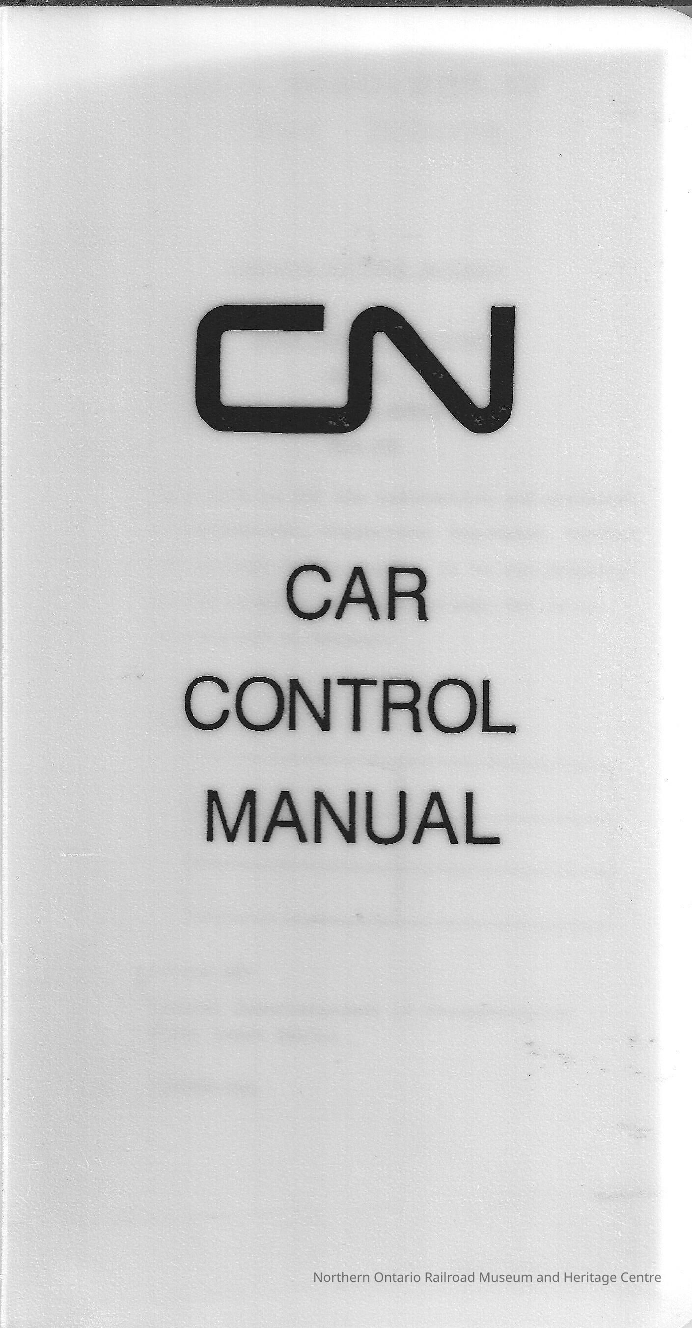 Book, manual for Canadian National's Car Control. Includes: car control system, foreman's switch line, general procedures, train yard procedures, industrial work procedures, siding capacity, radio operating instructions, customer alphabet listings, zone map, track and zone identification.