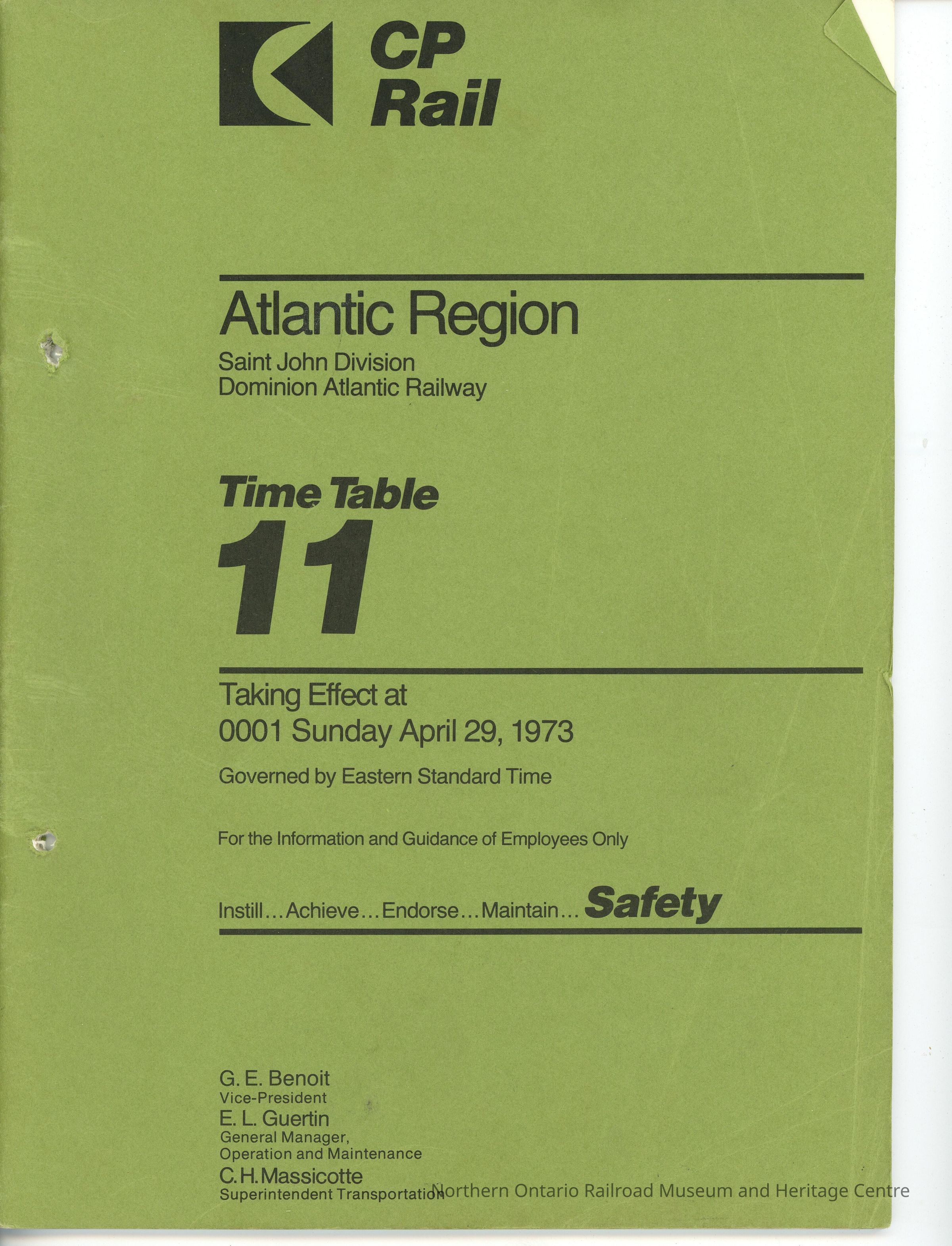 CN Employee Operating Time Table 11 for Pacific Region, Saint John Division, Effective Sunday, April 29th, 1973Collection