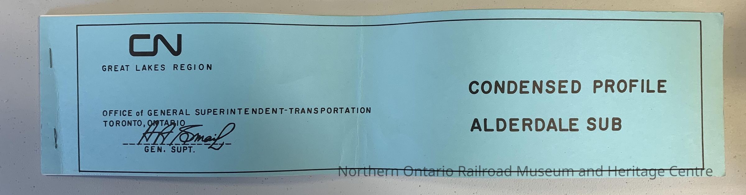 Condensed profile of Alderdale subdivision, issued by the Office of General Superintendent - Transportation, Toronto, Ontario.Collection