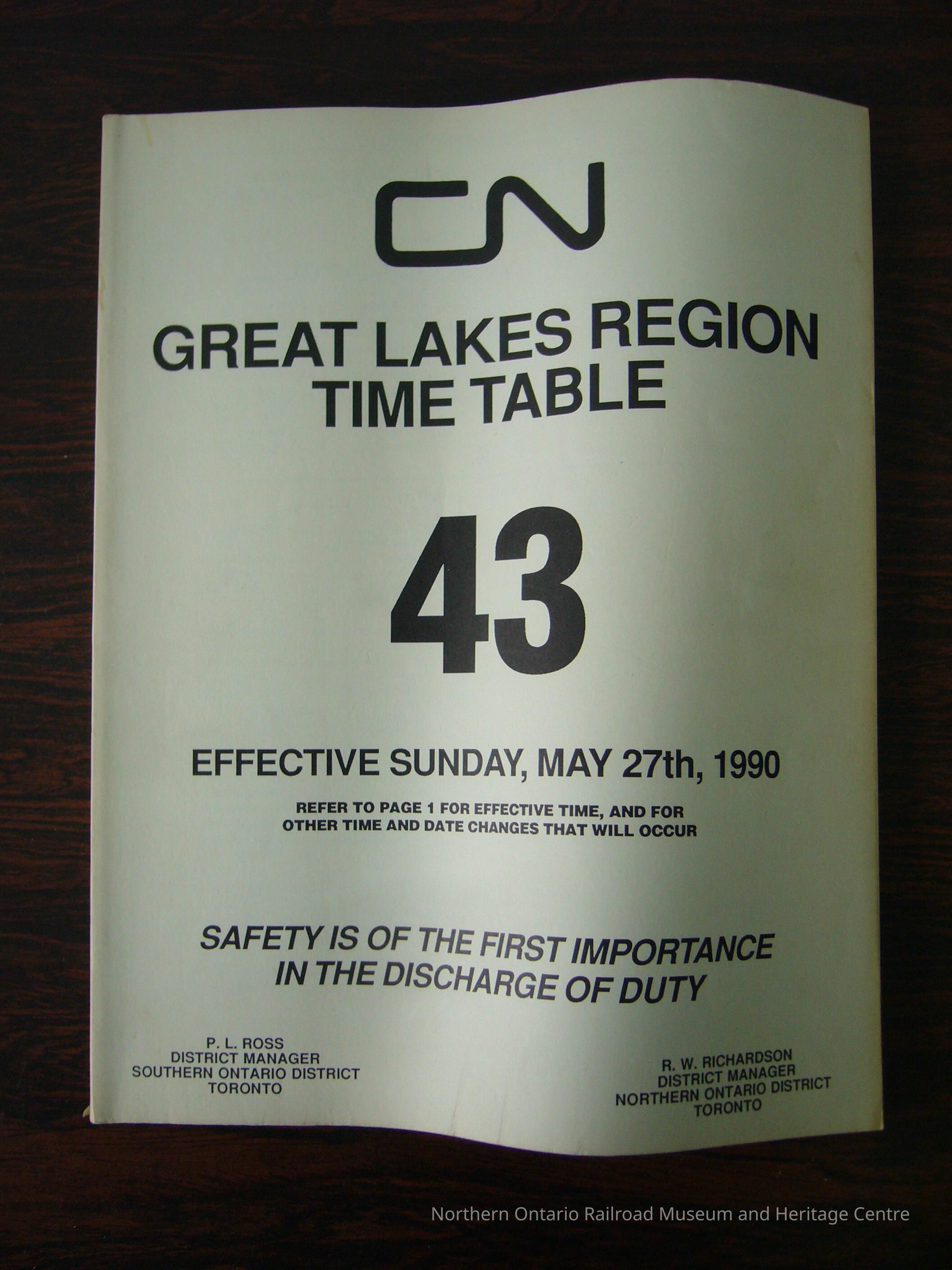 CN Great Lakes Region Time Table No. 43, Effective Sunday, May 27th, 1990Entry/Object ID