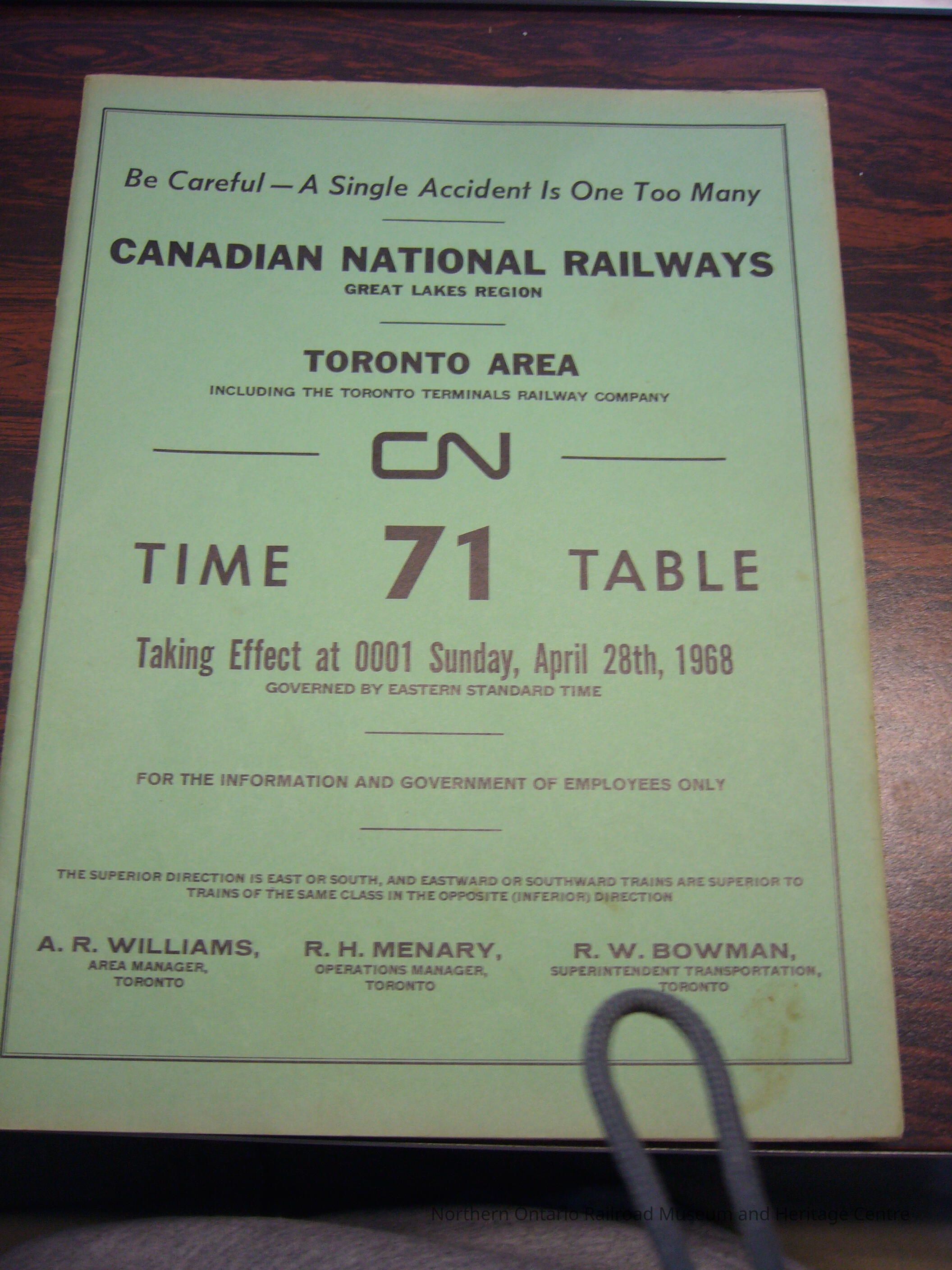 CN Great Lakes Region Toronto Area Employees' Operating Timetable 71. April 28th 1968Entry/Object ID