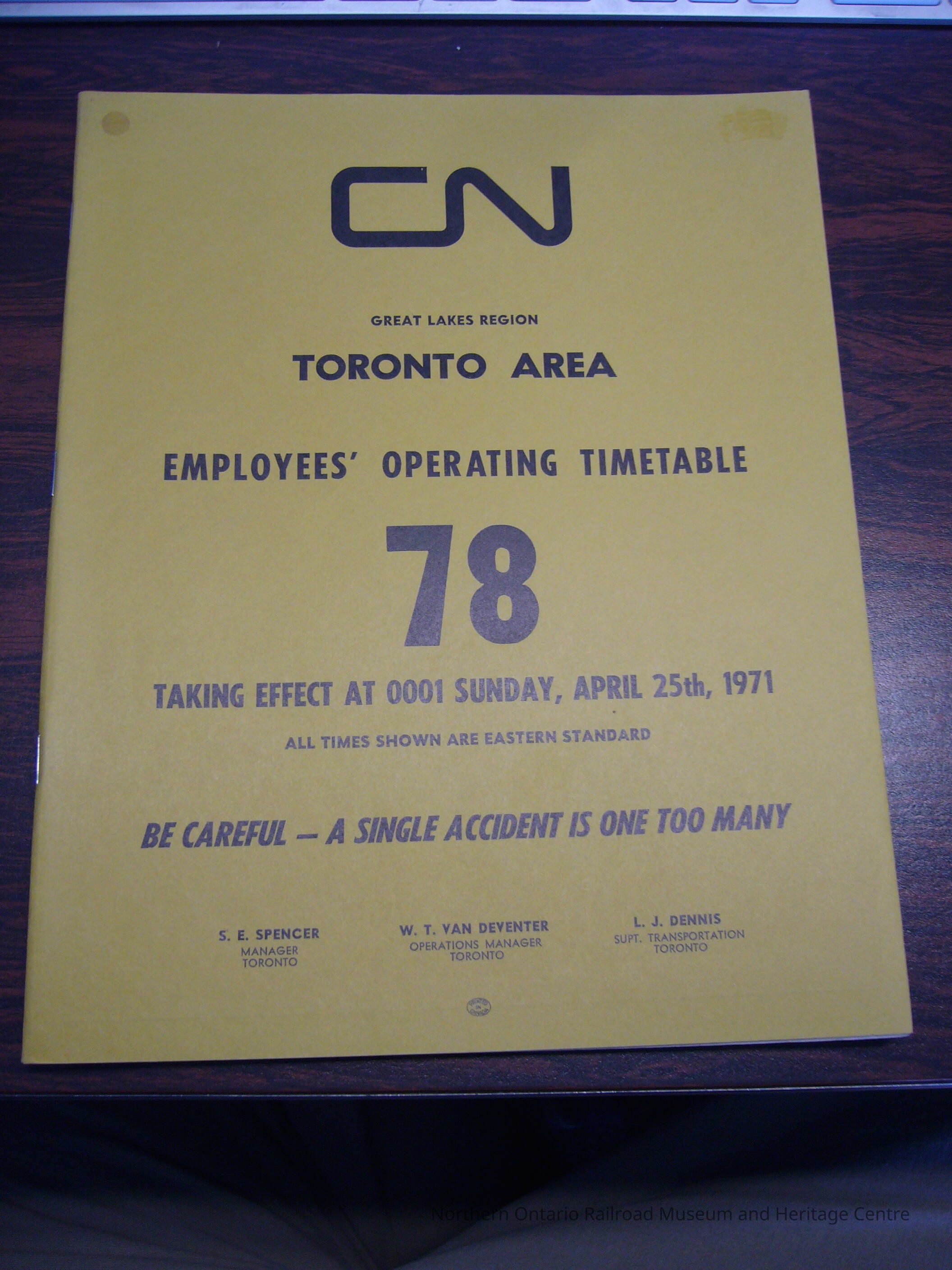 CN Great Lakes Region Toronto Area Employees' Operating Timetable 78. April 25th 1971Entry/Object ID