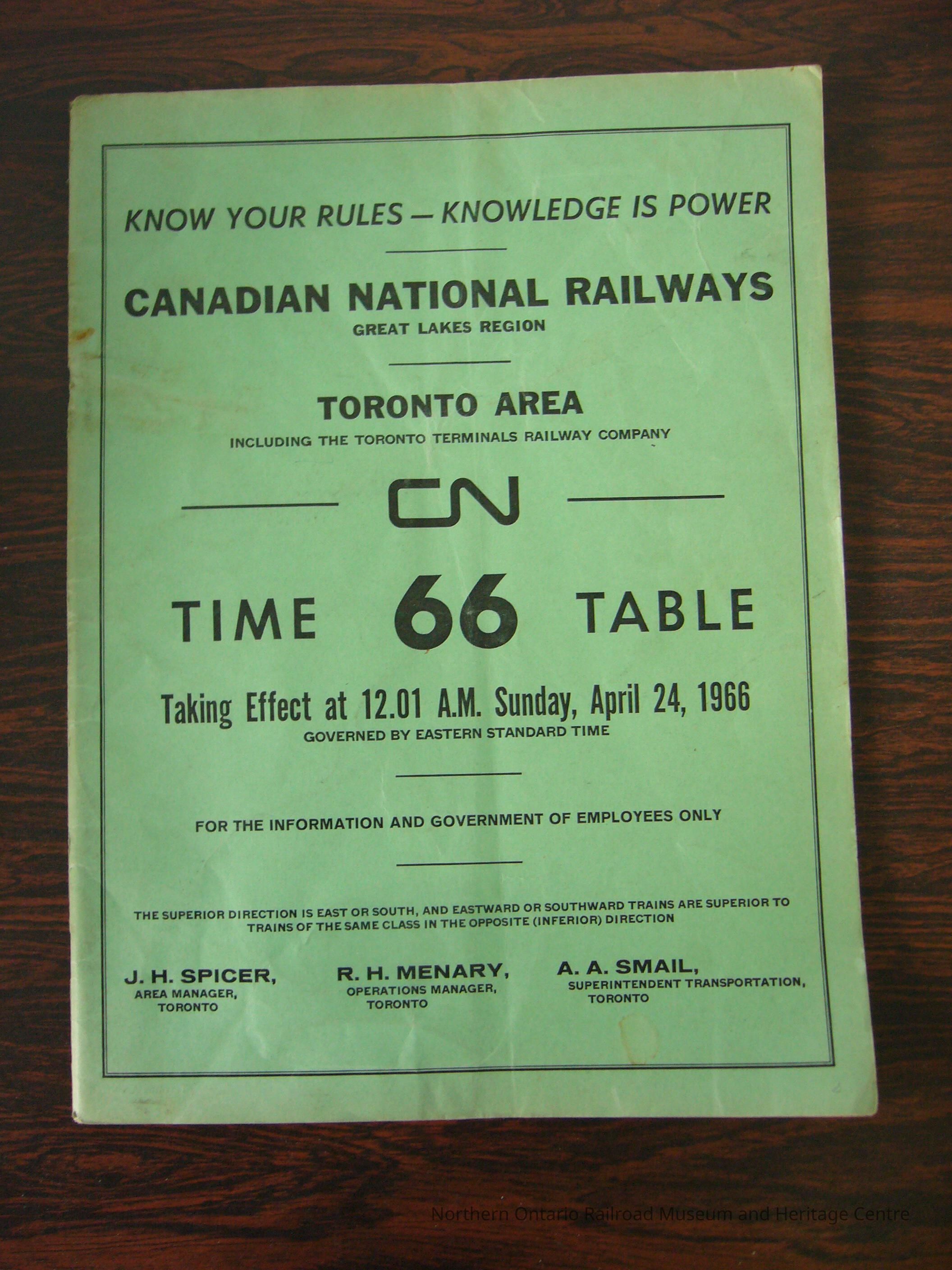 CN Great Lakes Region, Toronto Area, Time Table No. 66, Taking Effect at 12.01 A.M. Sunday, April 24, 1966Entry/Object ID