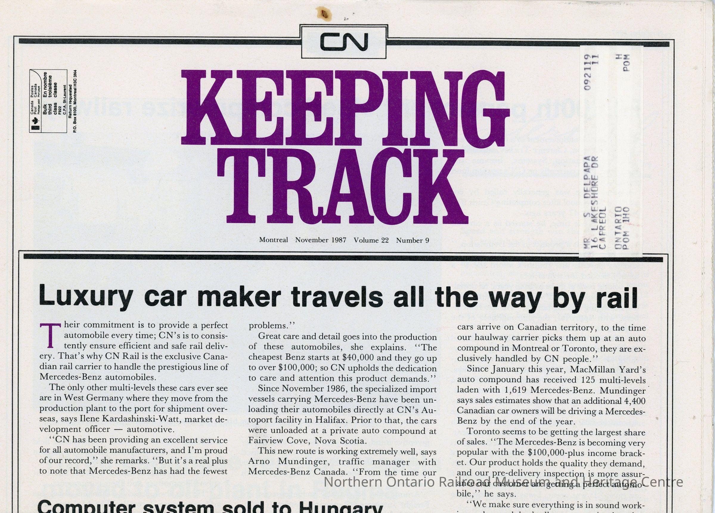 CN Keeping Track Magazine, November 1987, Volume 22, Number 9Collection
