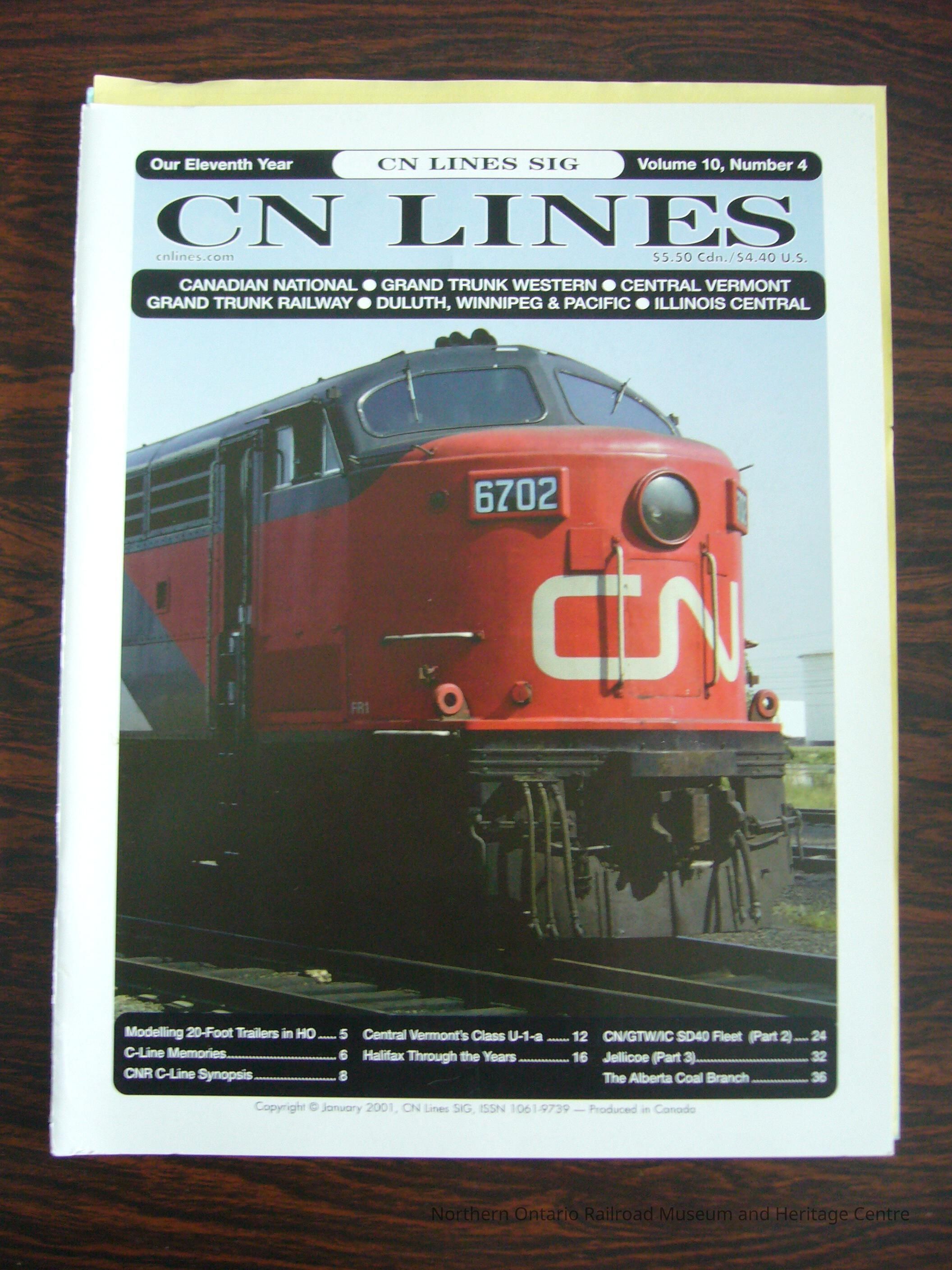 CN Lines magazine is published three times per year by CN Lines SIG, "an international self-sustaining operational research and historical society that exclusively focuses on the Canadian National family of railways and actively promotes the art of modelling them accurately. The CN Lines SIG is not affiliated with Canadian National." (taken from inside front cover)