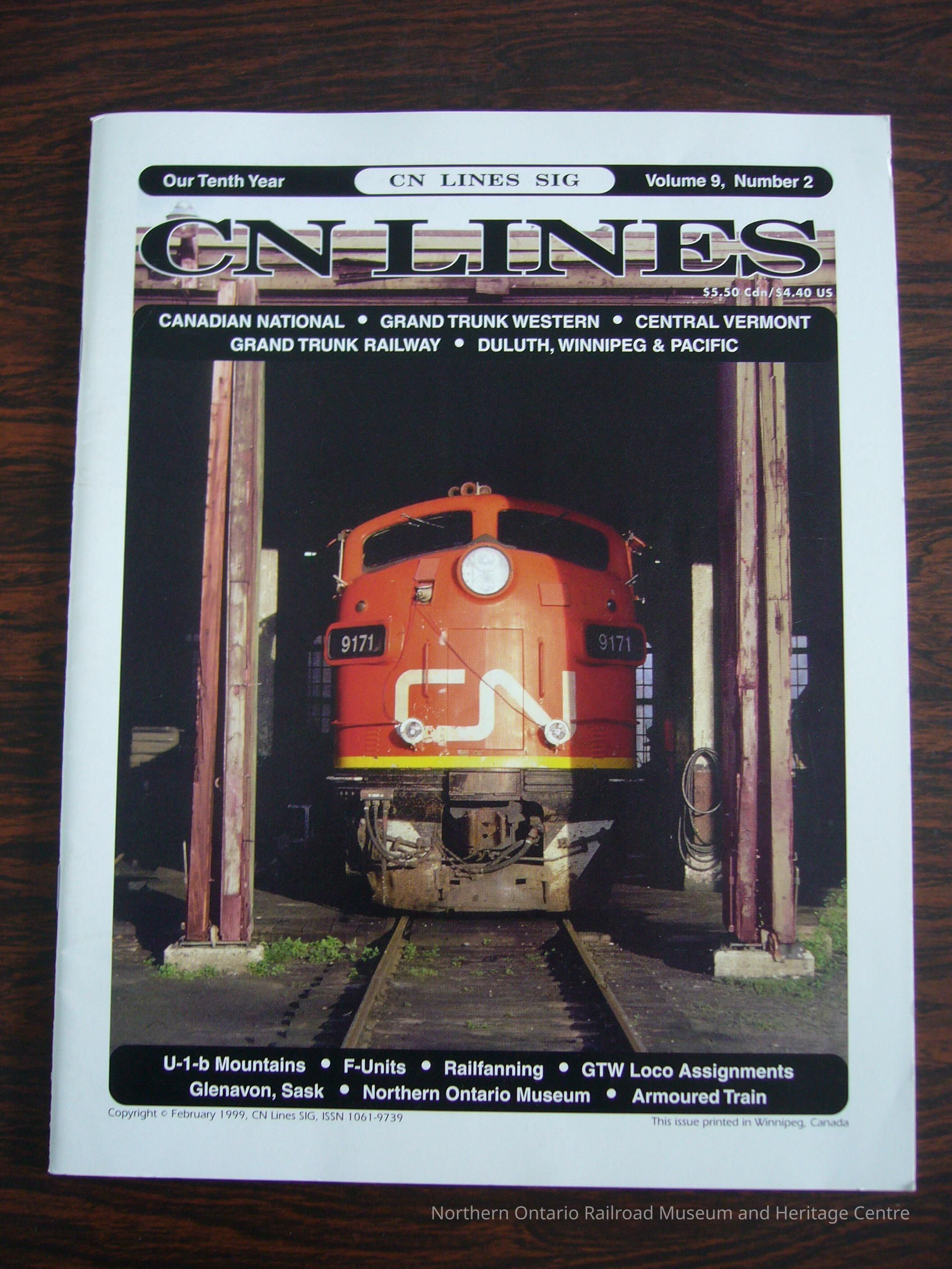 CN Lines magazine is published three times per year by CN Lines SIG, "an international self-sustaining operational research and historical society that exclusively focuses on the Canadian National family of railways and actively promotes the art of modelling them accurately. The CN Lines SIG is not affiliated with Canadian National." (taken from inside front cover)
