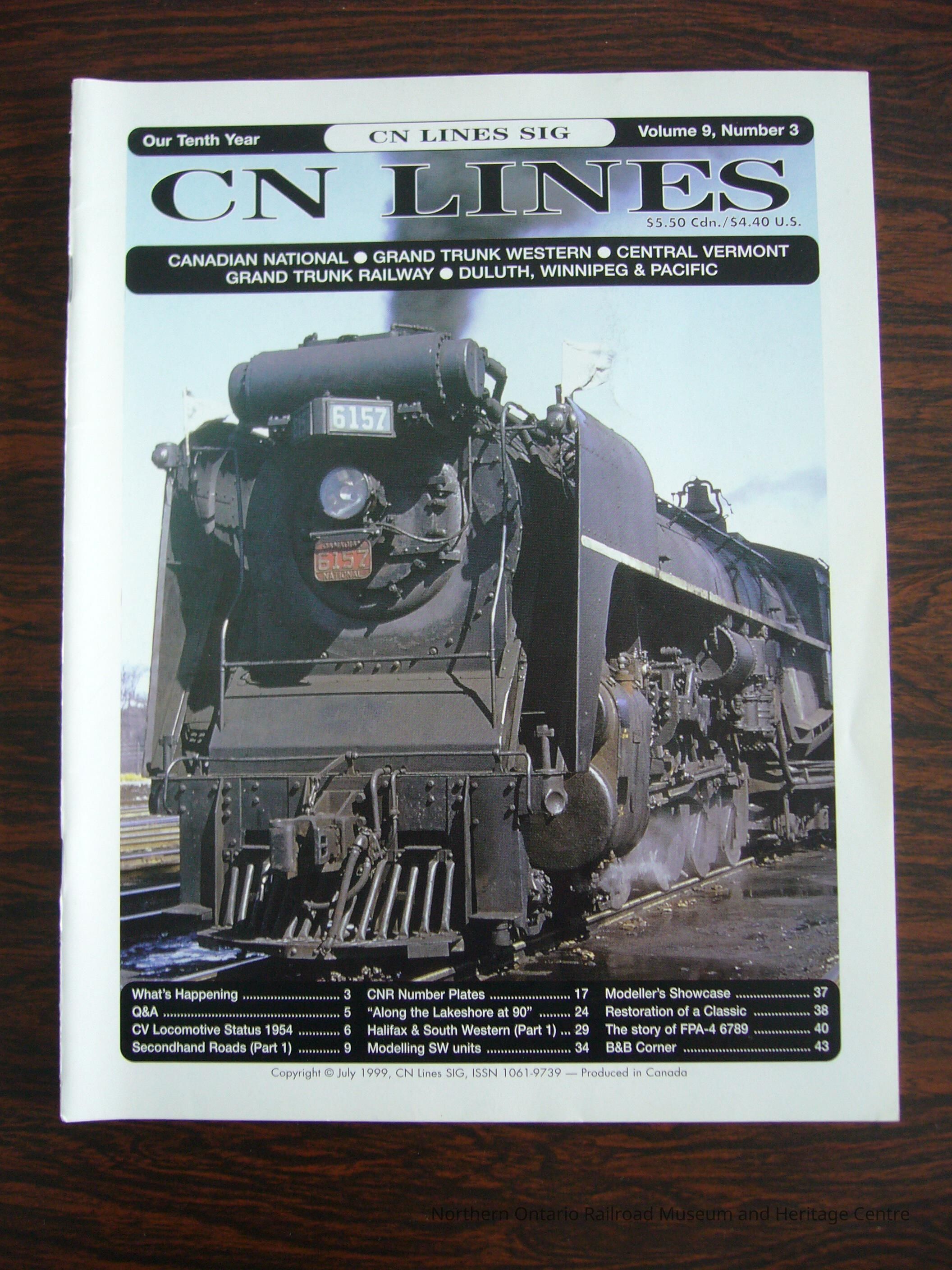 CN Lines magazine is published three times per year by CN Lines SIG, "an international self-sustaining operational research and historical society that exclusively focuses on the Canadian National family of railways and actively promotes the art of modelling them accurately. The CN Lines SIG is not affiliated with Canadian National." (taken from inside front cover)