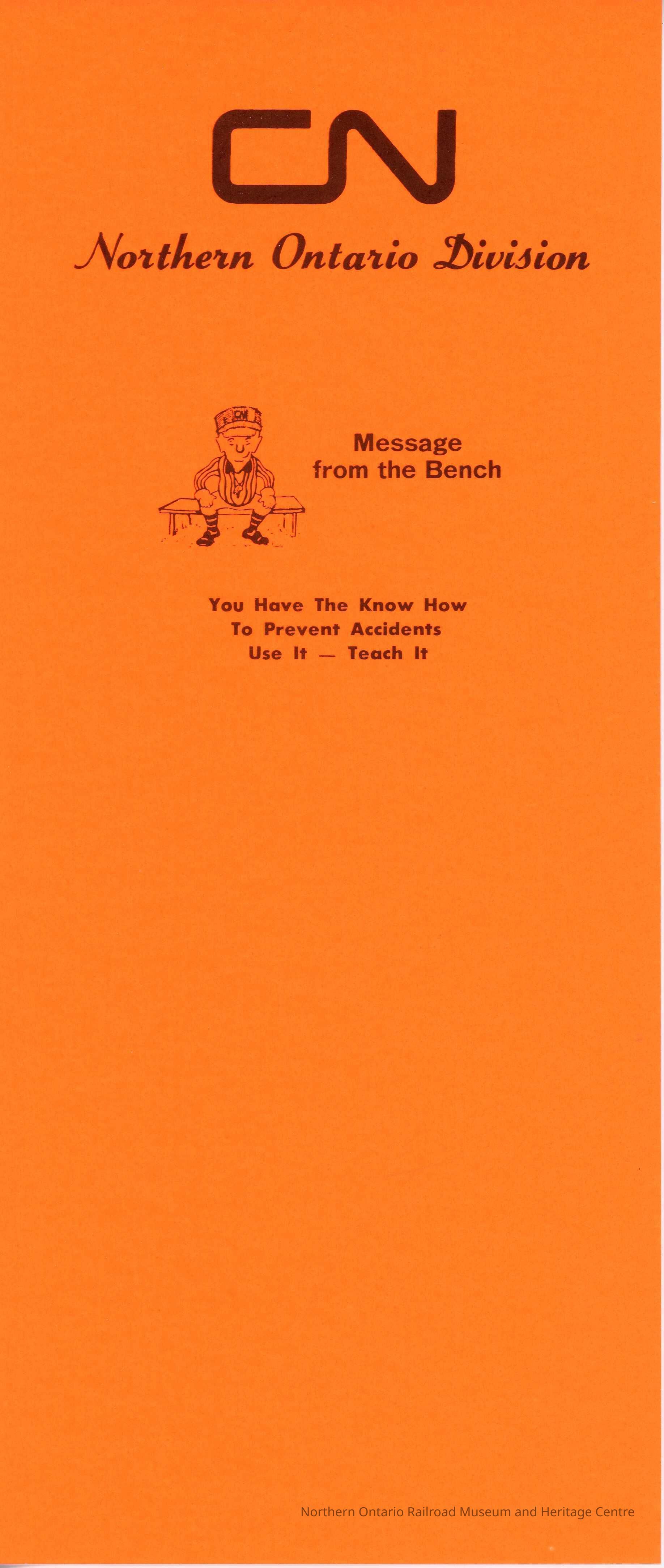 CN Northern Ontario Division "Message from the Bench" that reads "You Have The Know how to prevent accidents, Use it - Teach It"Collection