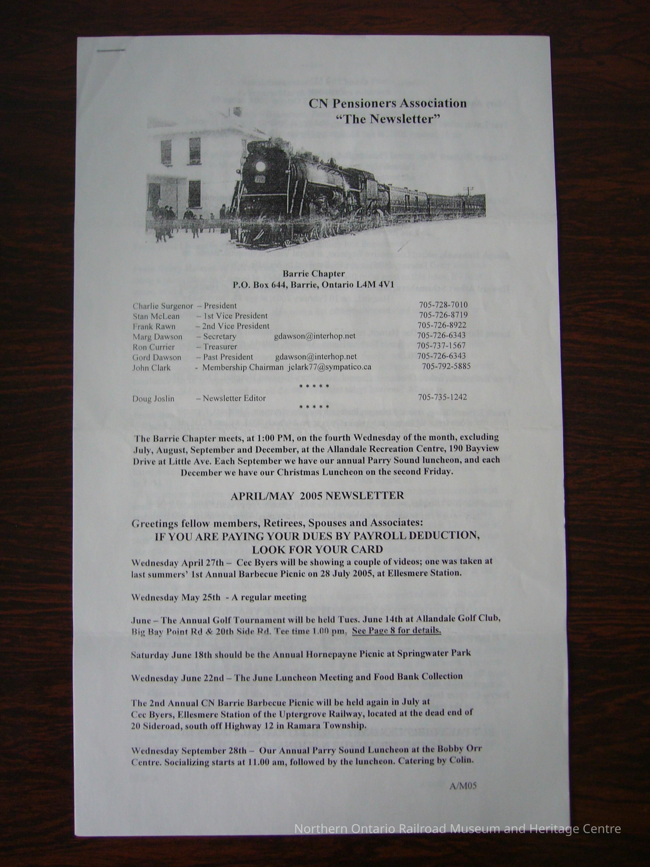 CN Pensioners Association newsletter, Barrie Chapter.Collection