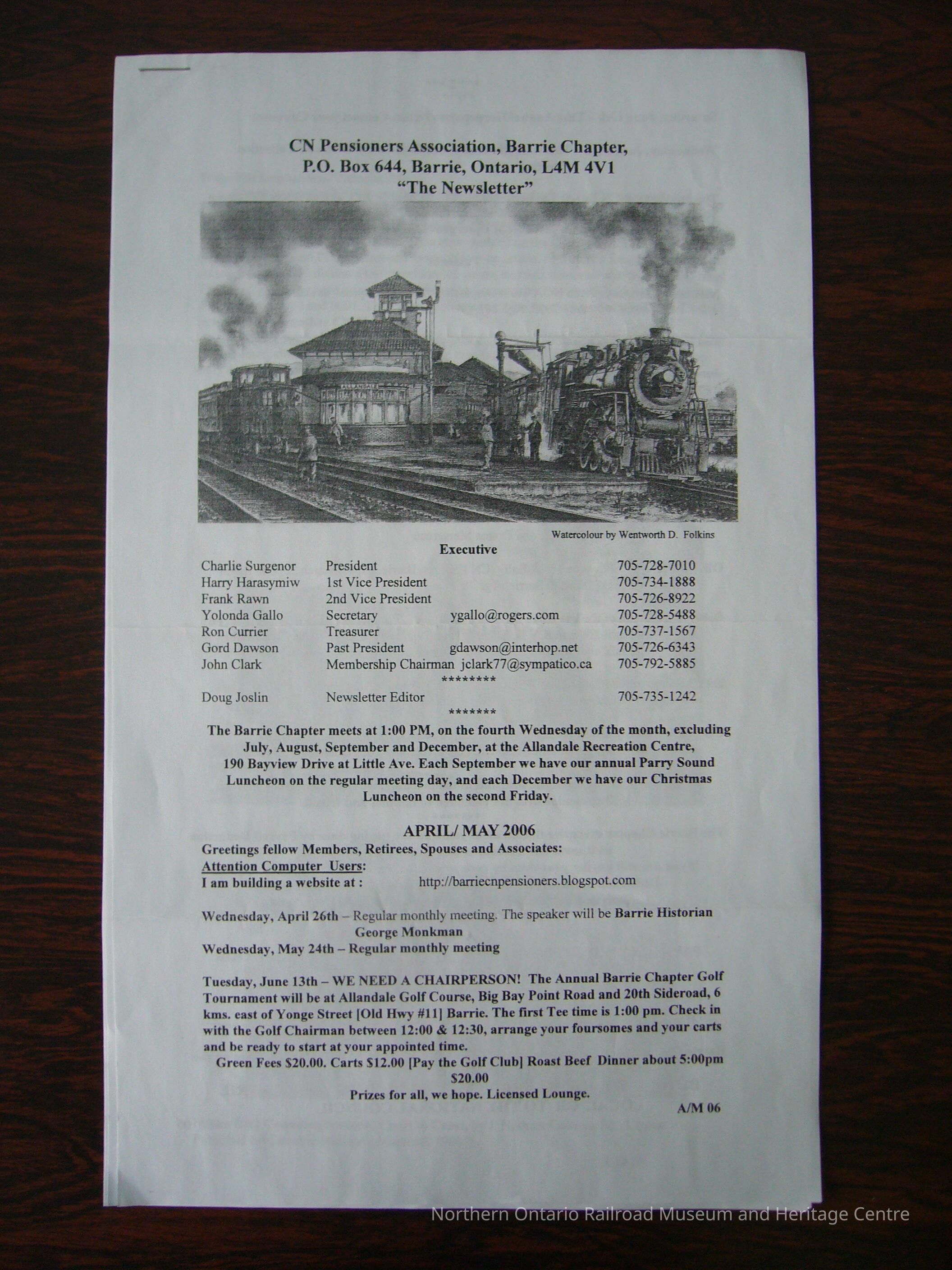 CN Pensioners Association newsletter, Barrie Chapter.Collection