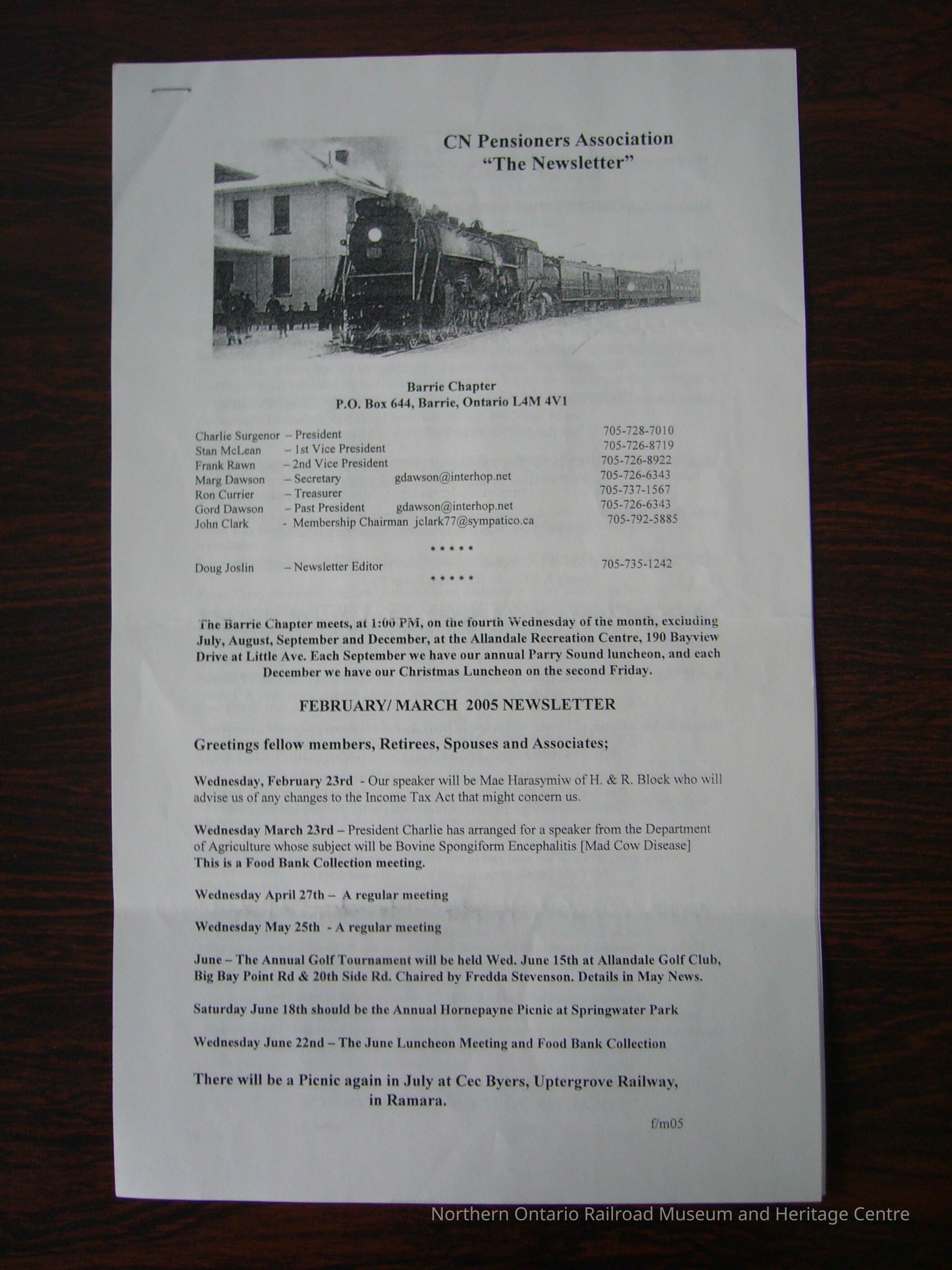 CN Pensioners Association newsletter, Barrie Chapter.Collection