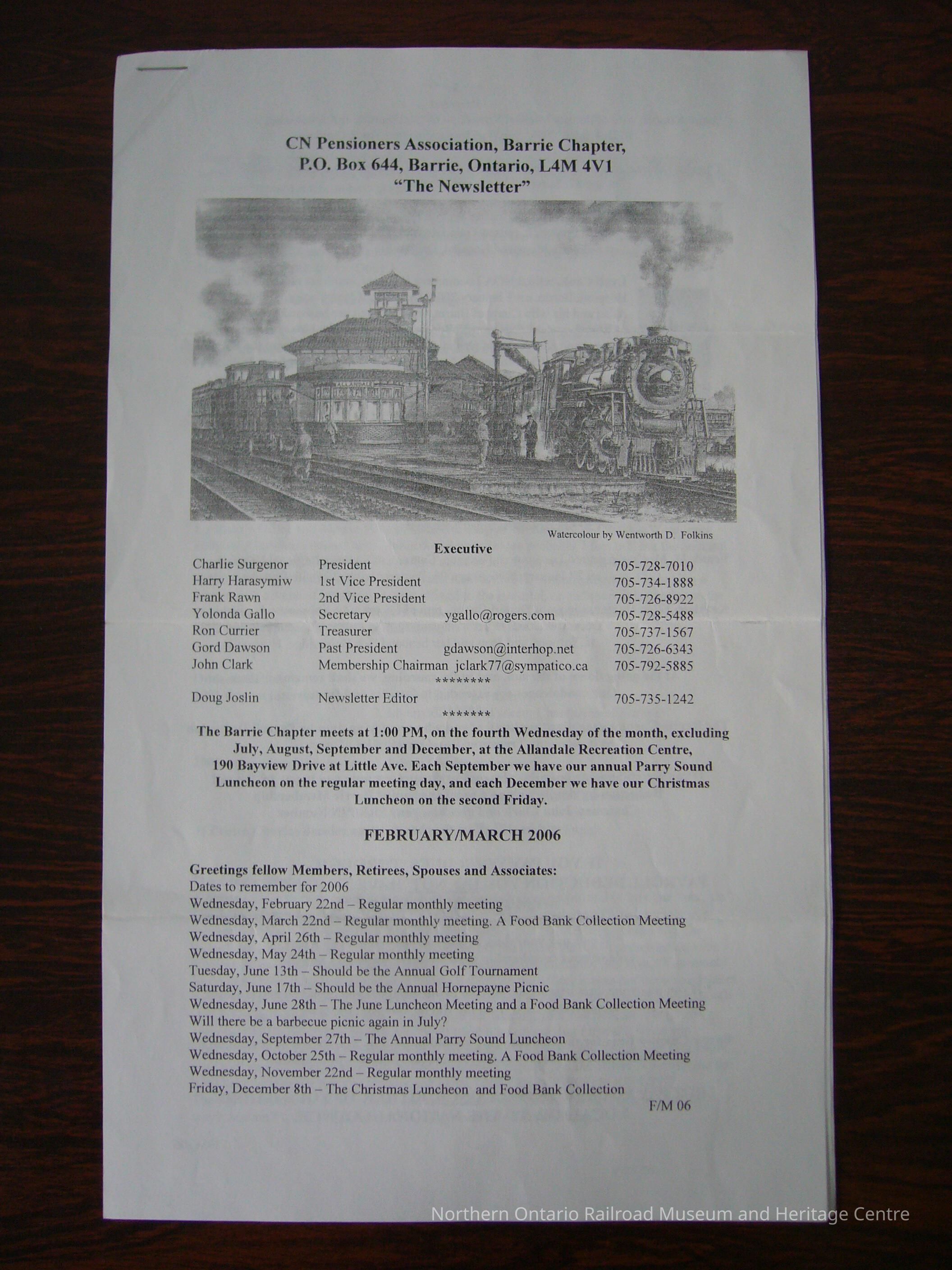 CN Pensioners Association newsletter, Barrie Chapter.Collection