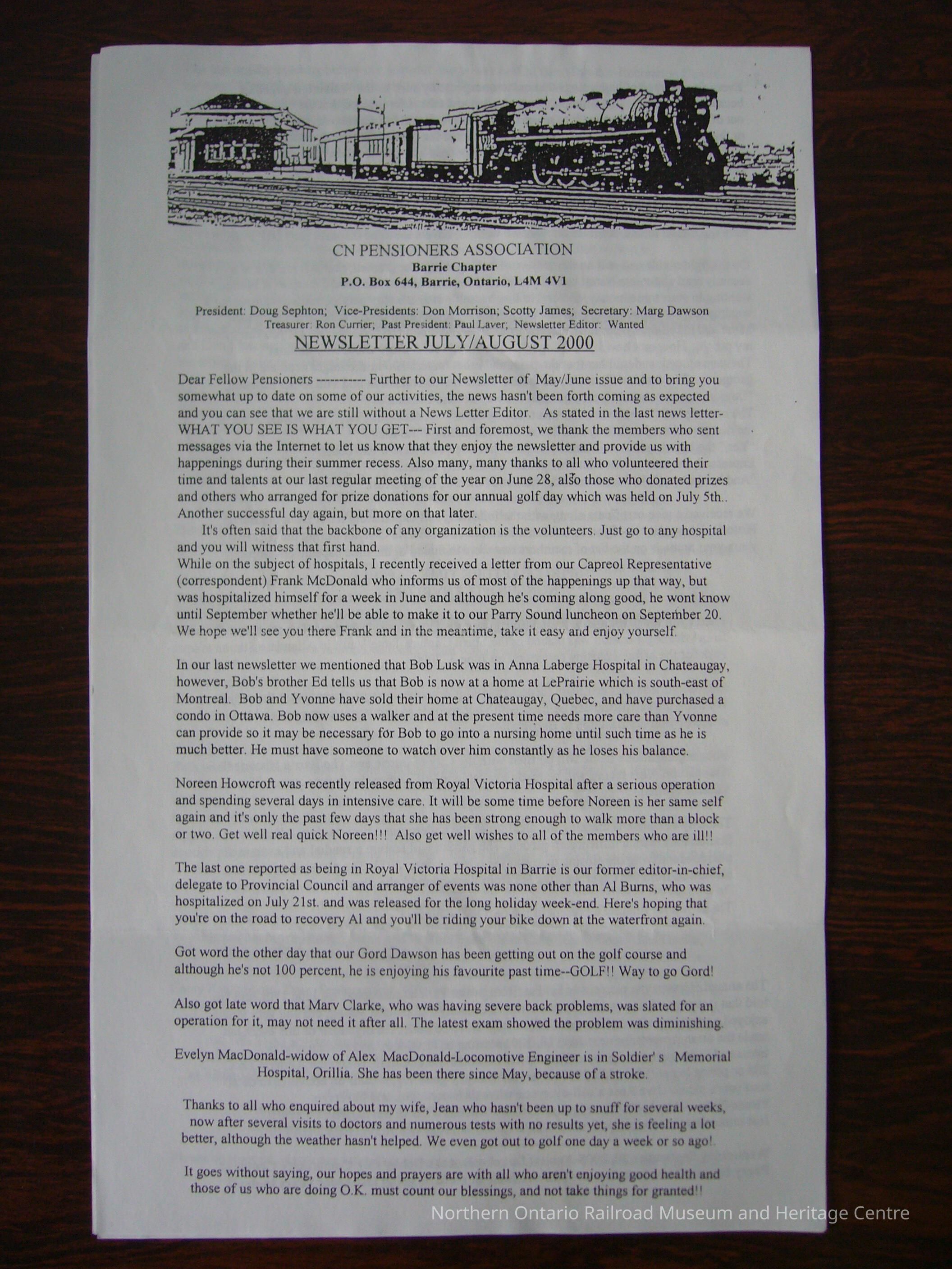 CN Pensioners Association July/August 2000 NewsletterDescription