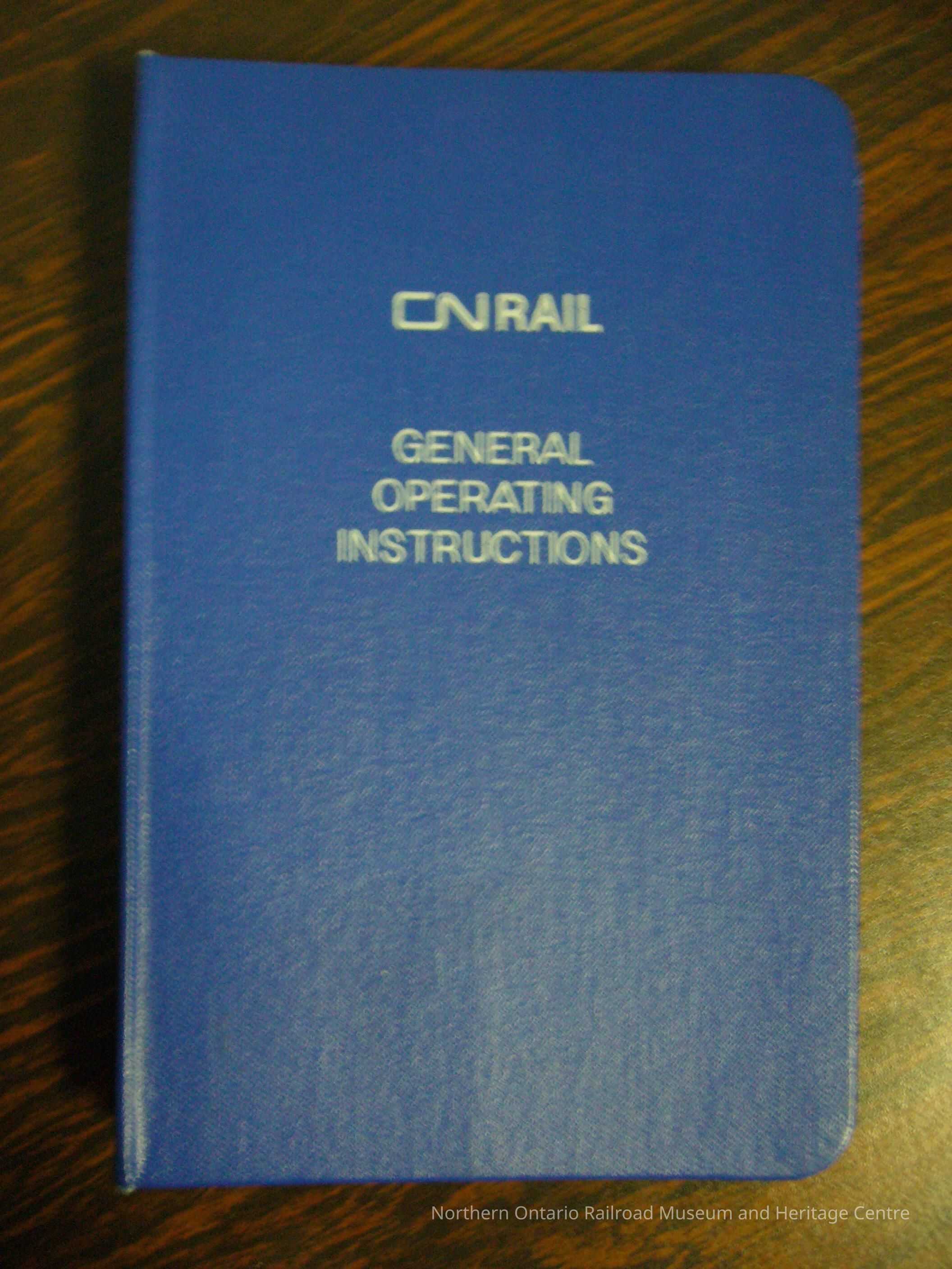 Book, operating instructions published by Canadian National. Contains general operating instructions. Includes: check sheet, miscellaneous, U.C.O.R. modifications, radio procedures, standard operating signs, hot box and dragging equipment detector system, marshaling speed restrictions and special equipment handling, specific equipment restrictions, operation of sperry detector cars, operation of snowplows, operation of highway-rail wrecking cranes, dangerous commodities, dimensional loads or cars, loss and damage prevention, scales and weighing, equated tonnage ratings, units with locked or damaged wheels, air brakes, communicating signal equipment, accidents, fire extinguishers, first aid, time service regulations, hours of service U.S. Territory