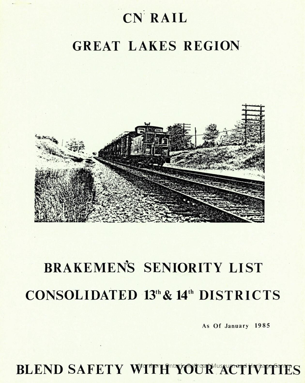 CN Rail, Great Lakes Region, Brakemen's Seniority List, Consolidated 13th & 14th Districts, as of January 1985.Collection