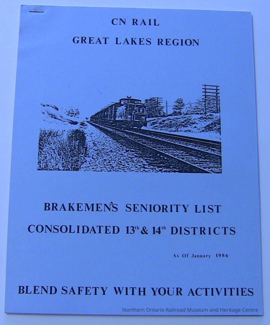 CN Rail Great Lakes Region Brakemen's Seniority List, Consolidated 13th & 14th Districts, January 1986Description