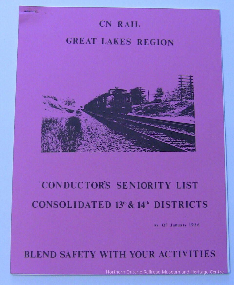CN Rail Great Lakes Region Brakemen's Seniority List, Consolidated 13th & 14th Districts, January 1986Description