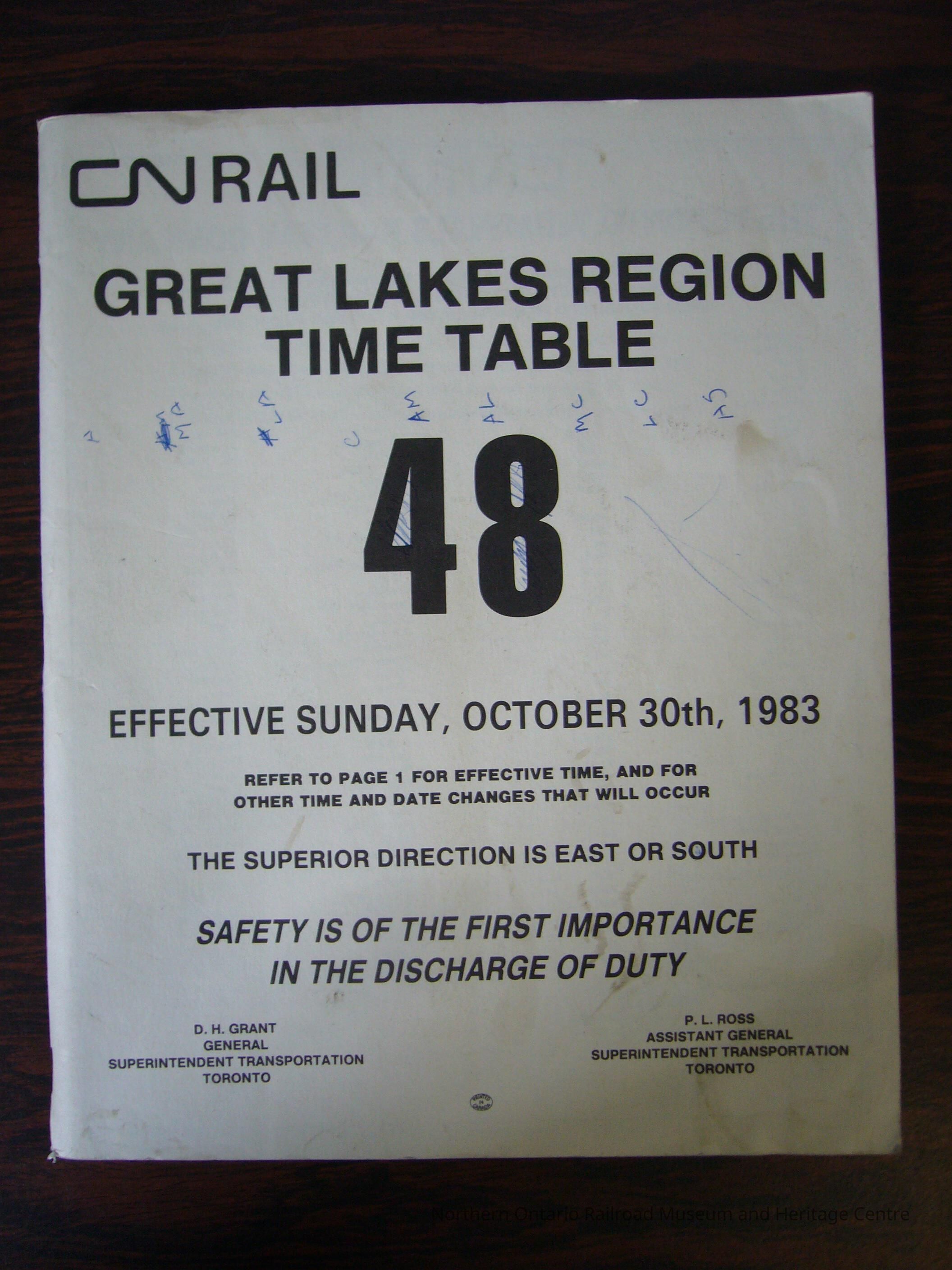 CN Rail Great Lakes Region Time Table 48, Effective Sunday, October 30th, 1983Collection
