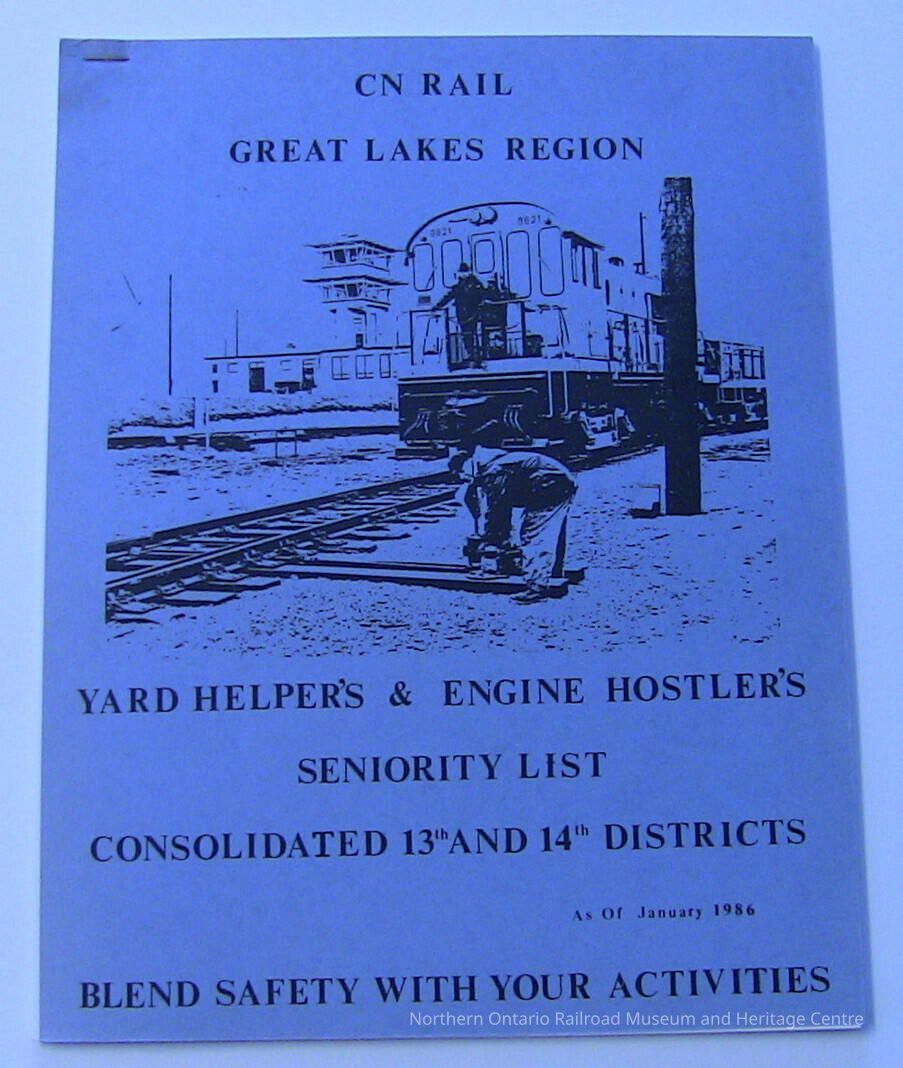 CN Rail Great Lakes Region Yard Helper's & Engine Hostler's Seniority List, Consolidated 13th & 14th Districts, January 1986Description