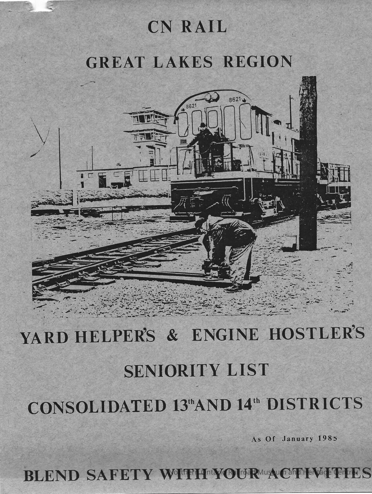 CN Rail, Great Lakes Region, Yard Helper's & Engine Hostler's Seniority List, Consolidated 13th and 14th Districts, January 1985.Collection