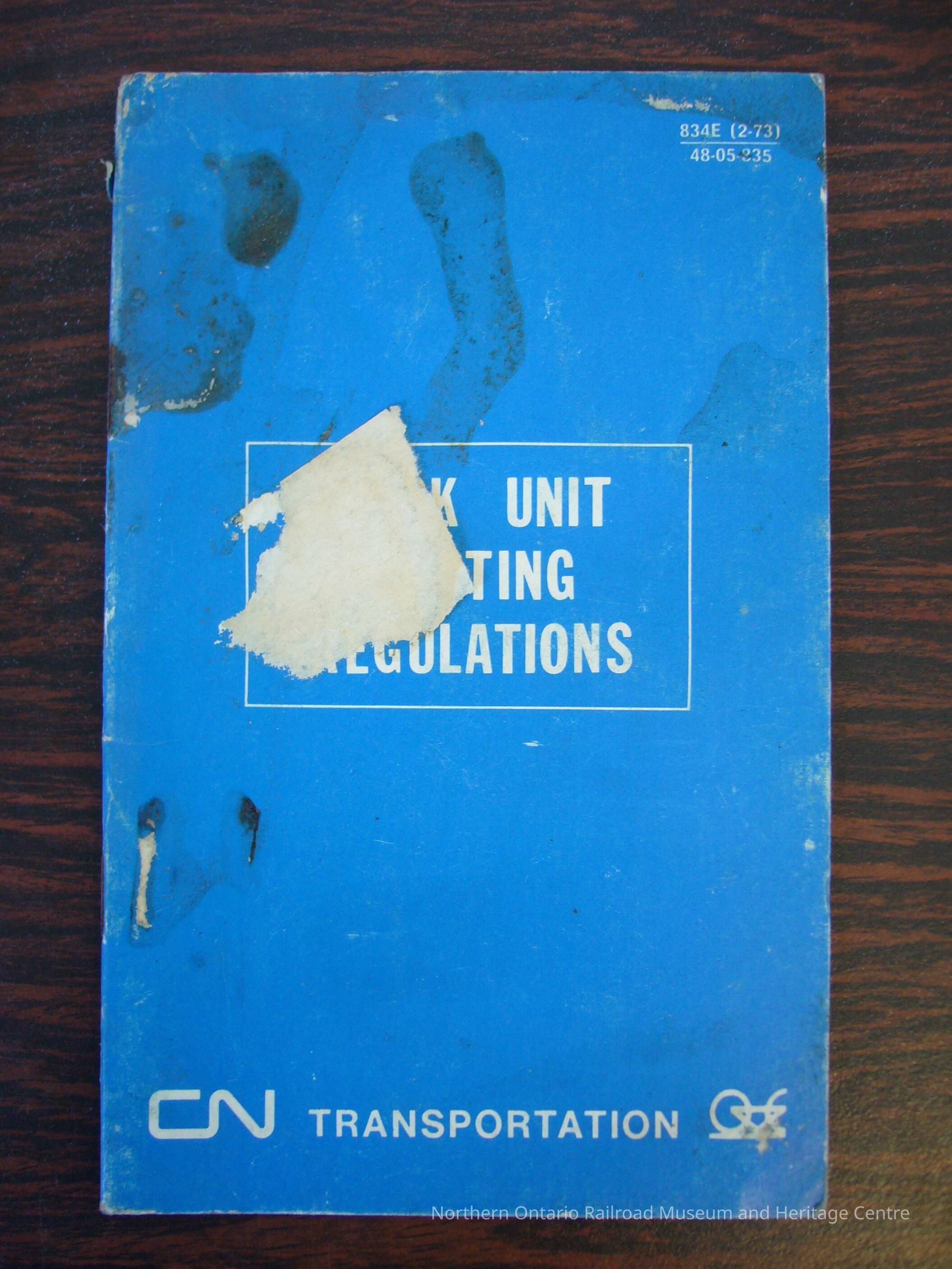CN Rail Track Unit Operating Regulations, February 1973.Collection