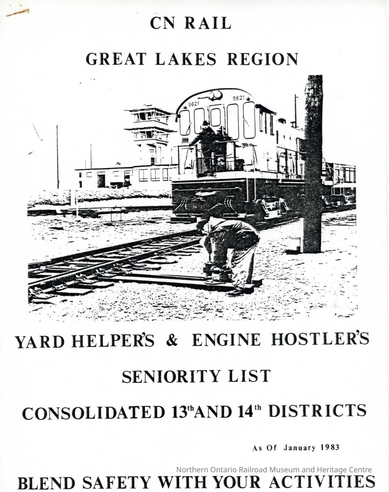 CN Rail, Yard Helper's and Engine Hostler's Seniority List, Consoldiated 13th and 14th Districts, as of January 1983.Collection