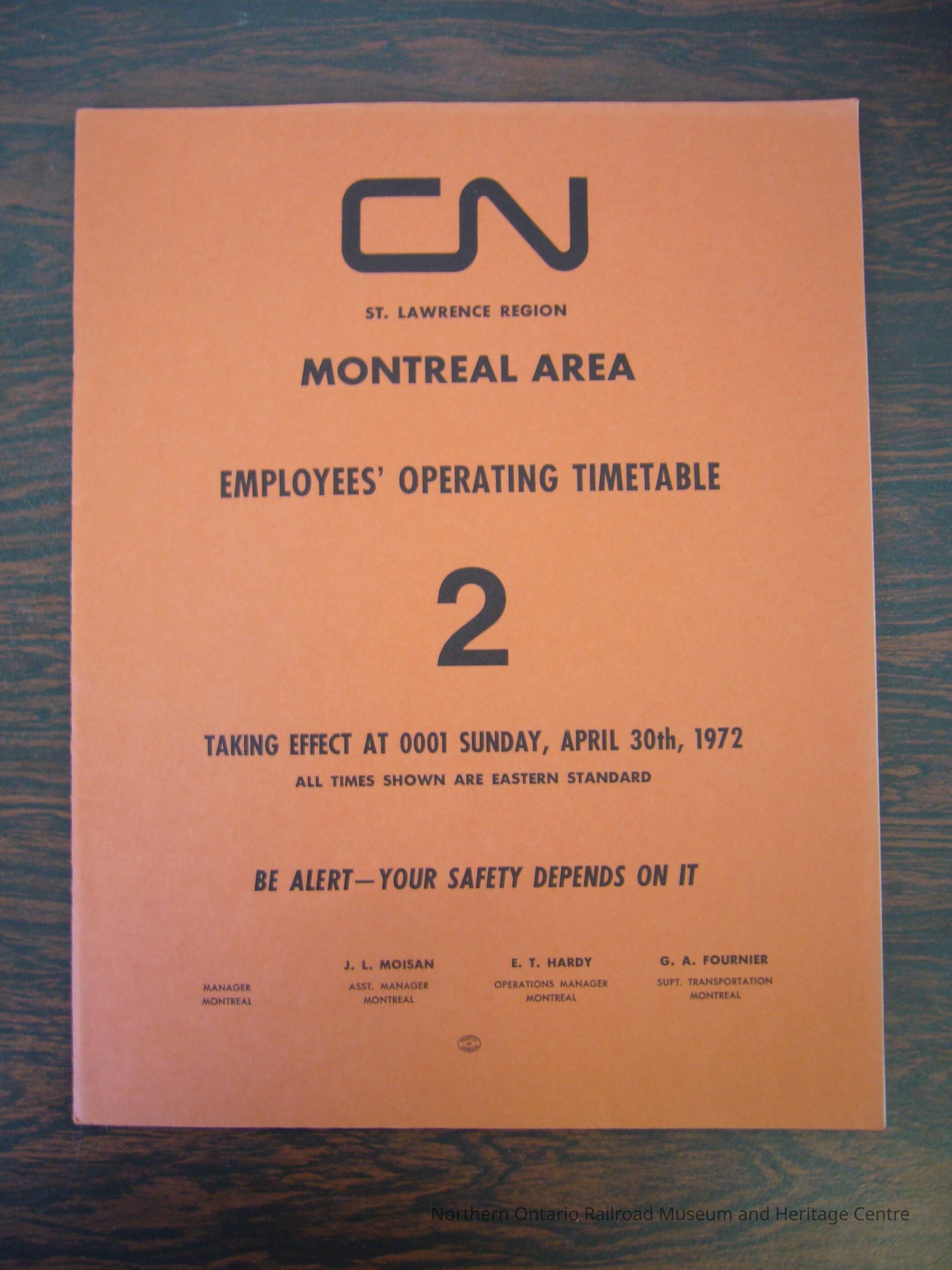 CN St. Lawrence Region Montreal Area Employees' Operating Timetable 2, Taking Effect Sunday, April 30th, 1972.Collection