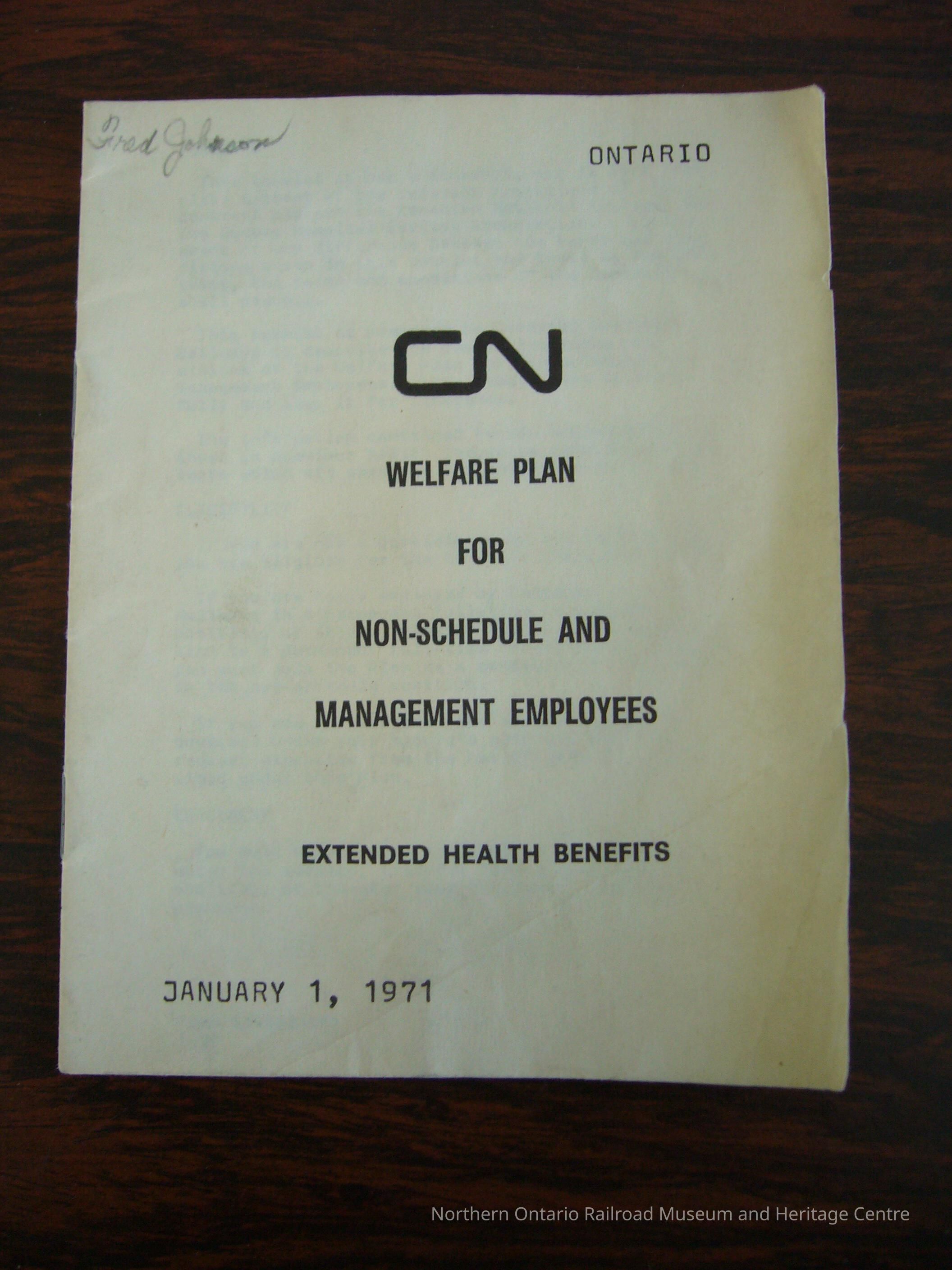 CN welfare plan for non-schedule and management employees, extended health benefits. Issued January 1, 1971.Collection